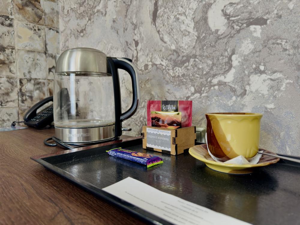 Мини-бар, Электрический чайник, Телевизор с плоским экраном и кабельными каналами, Фен, Гигиенические принадлежности, Одноразовые тапочки, Бутилированная вода, Махровый халат