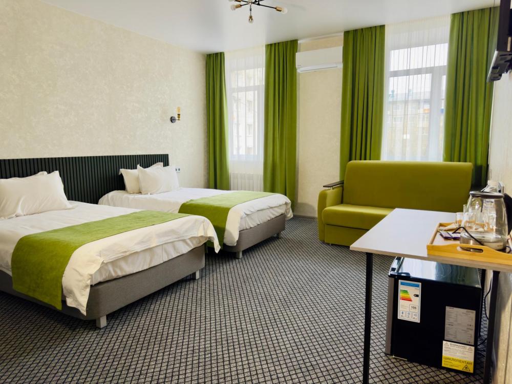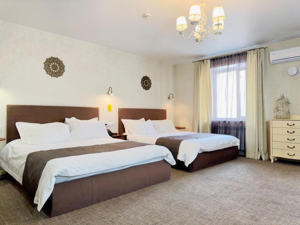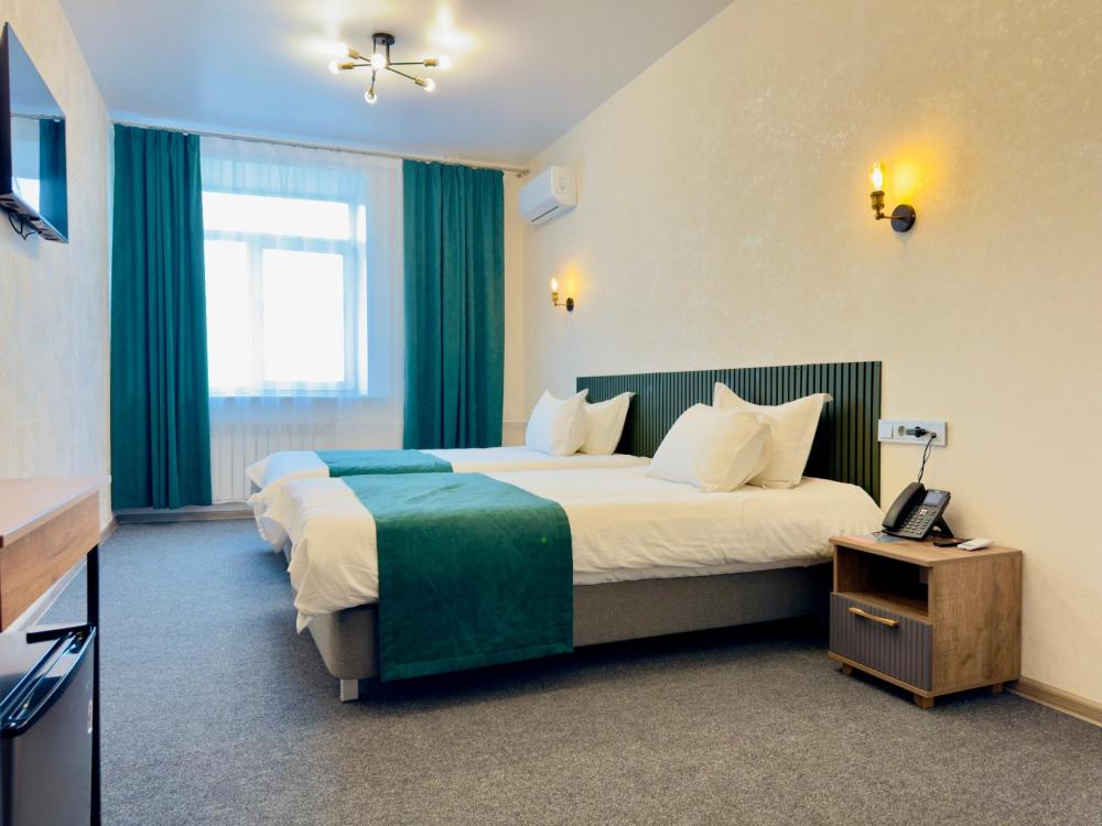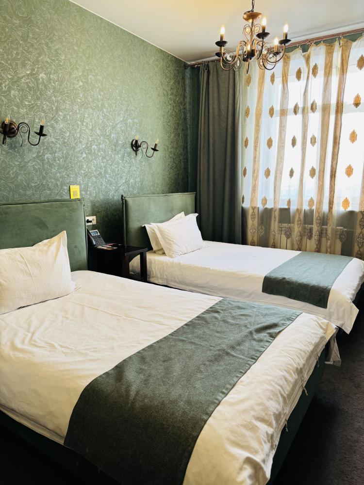 Стандартный номер с раздельными кроватями: — 2 односпальные кровати — гигиенические принадлежности — вода в бутылках в подарок — индивидуальный сейф — одноразовые тапочки — Телевизор с кабельным TV — кондиционер — мини-бар — чайник — душ — фен — Wi-Fi —Чайный и кофейный набор