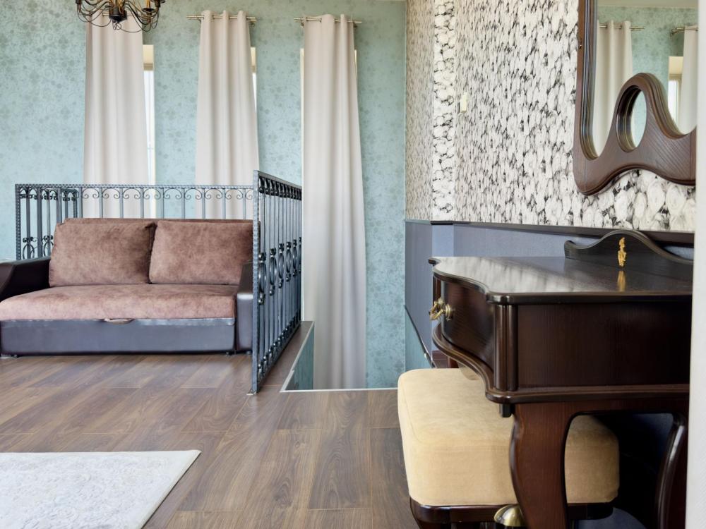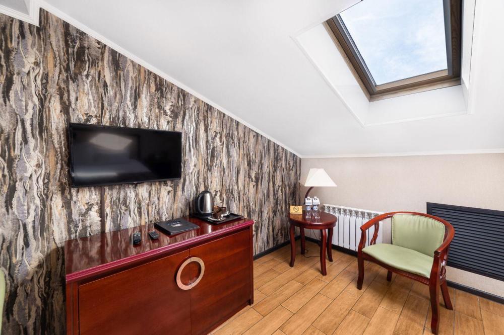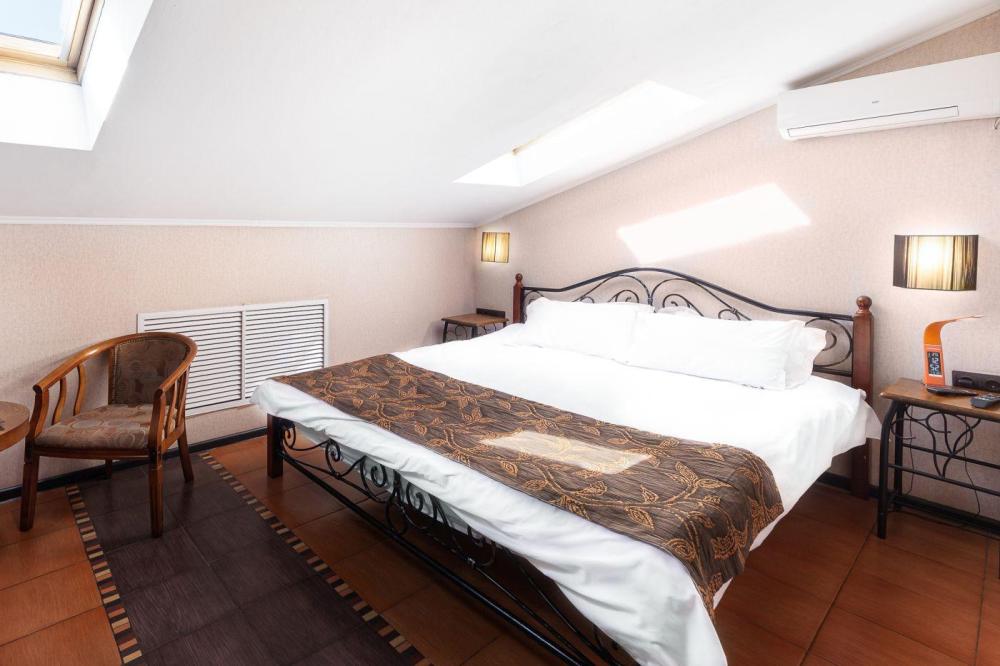 Мансардный номер люкс, Мини-бар, Электрический чайник, Телевизор с плоским экраном и кабельными каналами, Фен, Гигиенические принадлежности, Одноразовые тапочки, Бутилированная вода, Кондиционер, Радио, Махровый халат