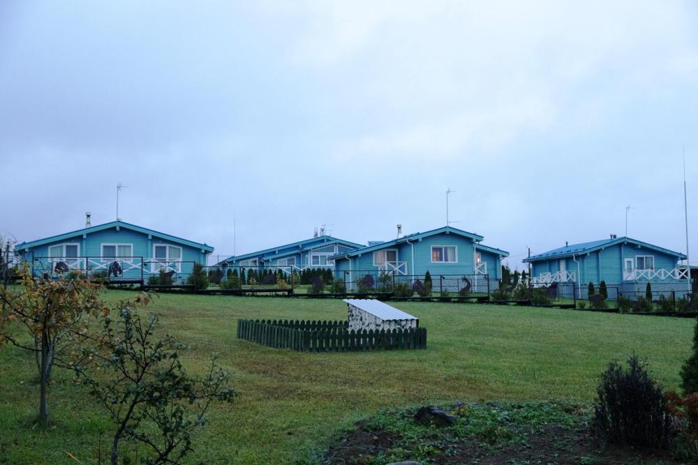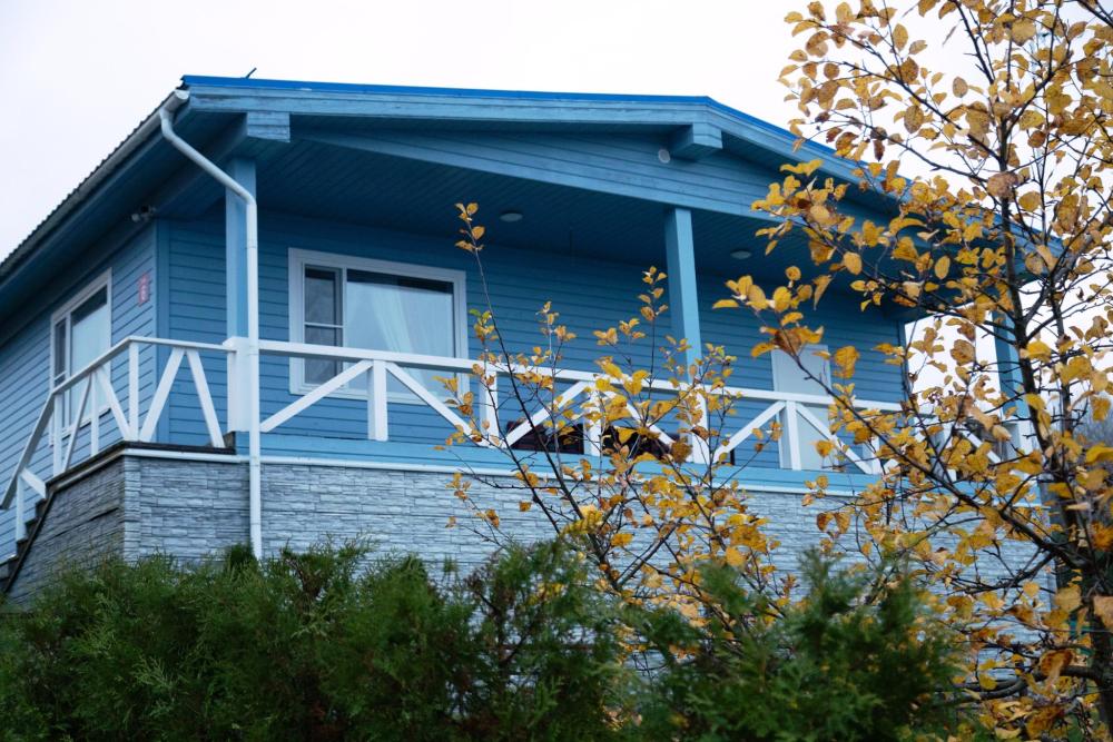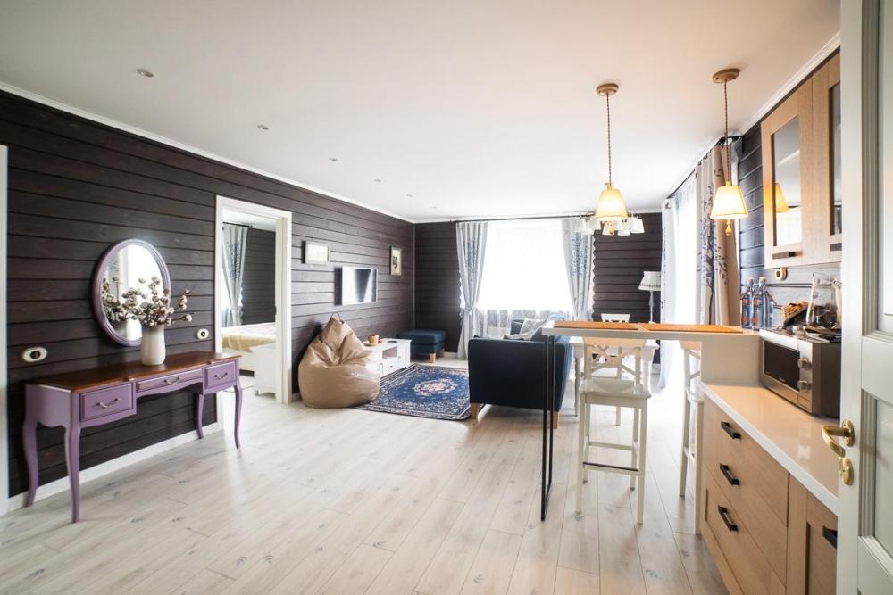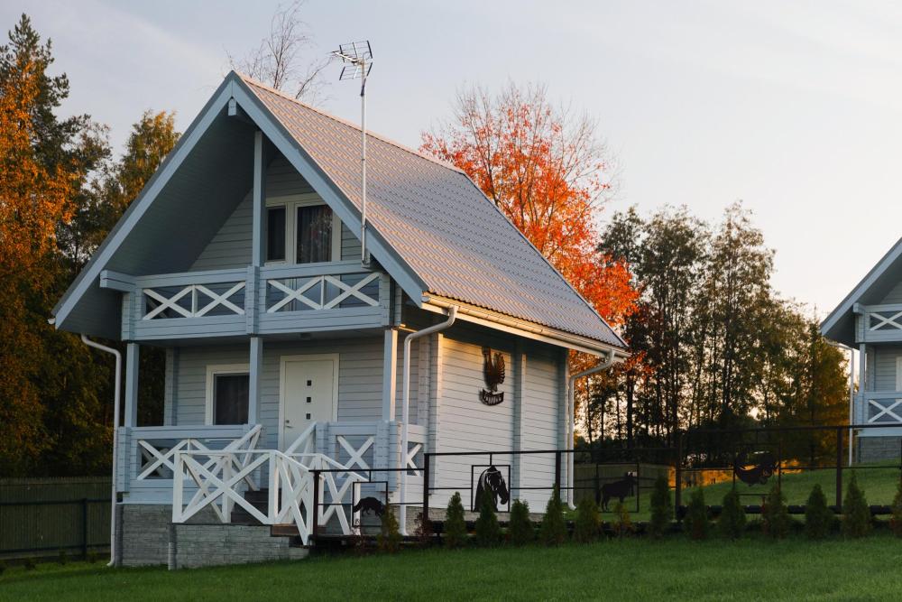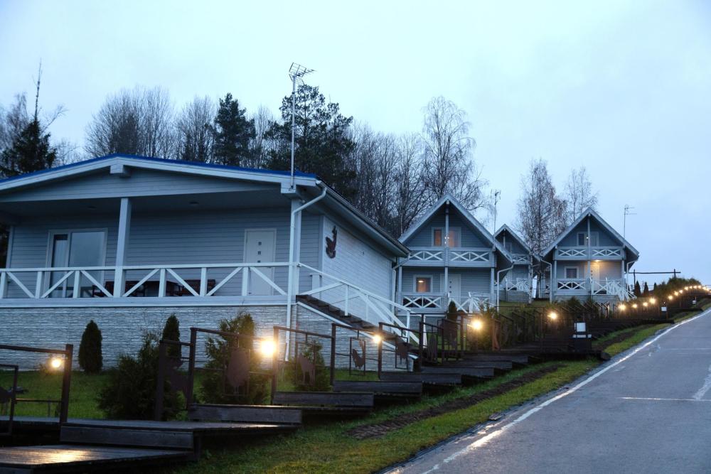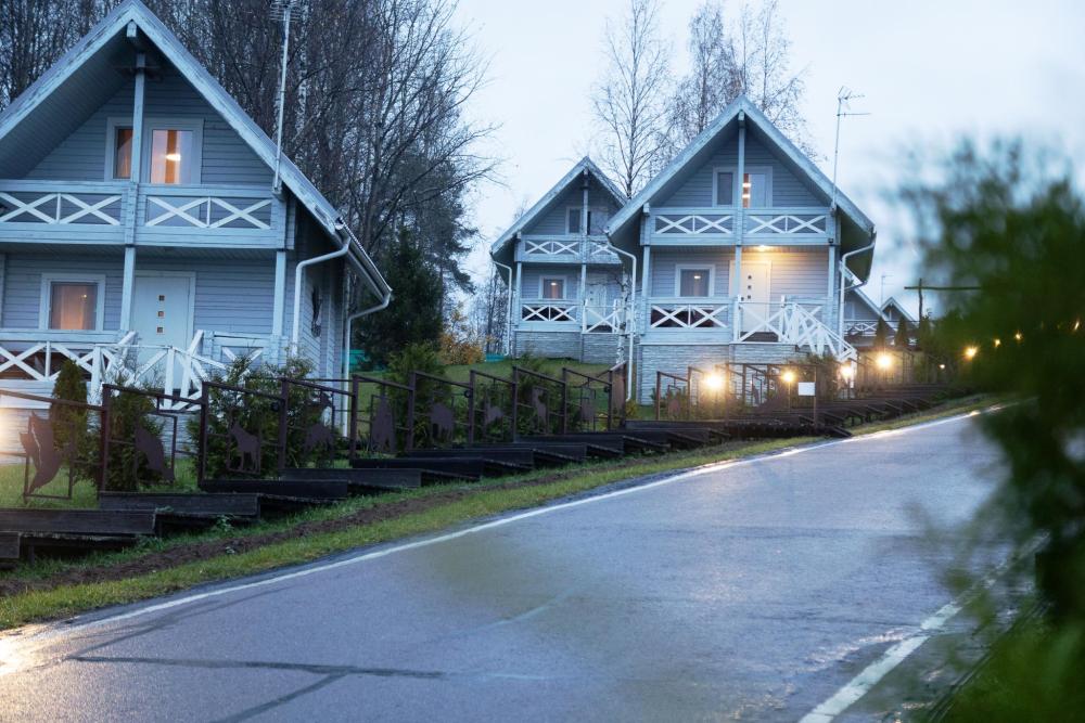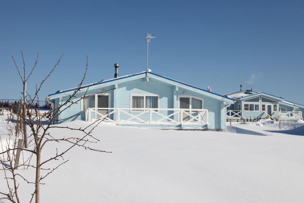 Уютный двухэтажный дом, площадью 45 м2 с отделкой из натуральной древесины. На первом этаже: гостиная с мягким диваном и ЖК-телевизором, мини-бар, кухня, оснащенная микроволновой печью, холодильником, электрочайником, капсульной кофемашиной и сервировочной посудой. также на первом этаже находится санузел. На втором этаже - спальня с тремя односпальными кроватями. В этом доме есть небольшая терраса, а из спальни можно выйти на просторный балкон.