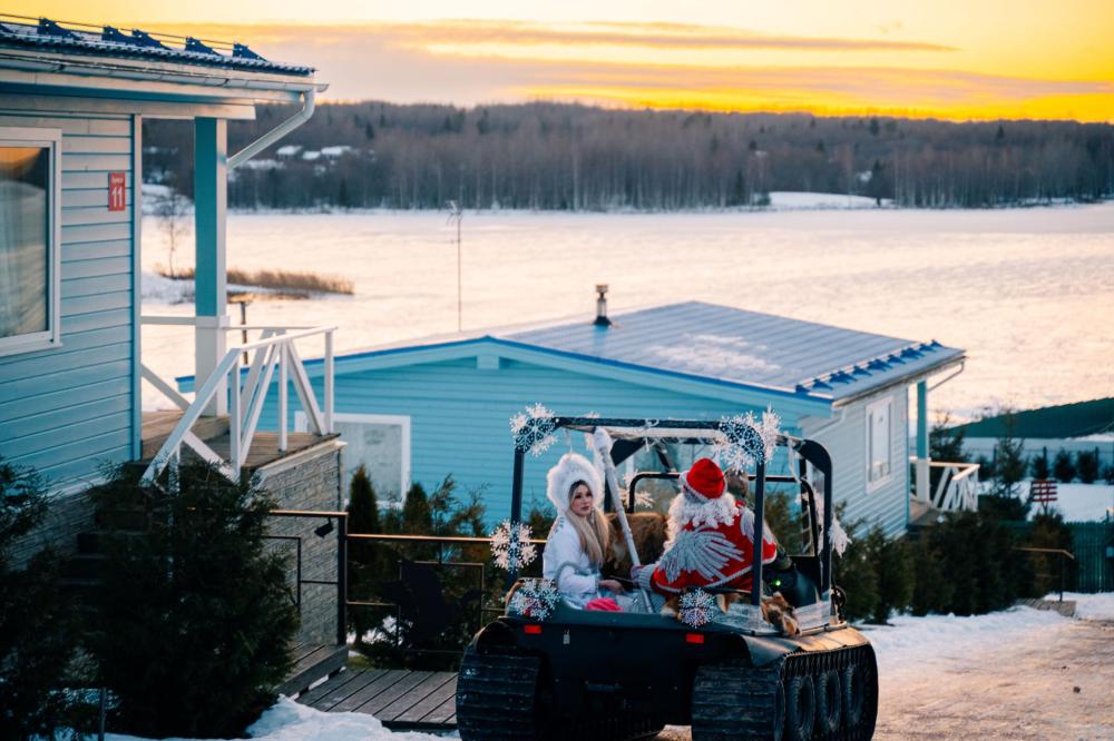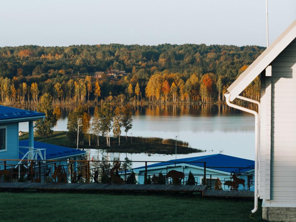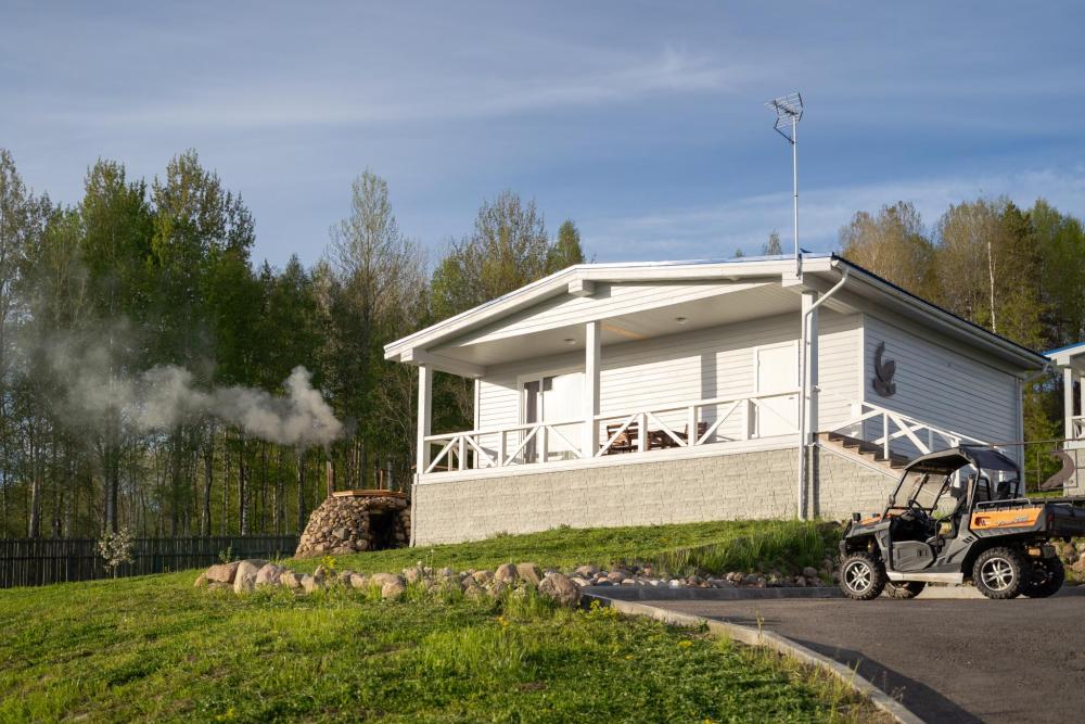 Светлый одноэтажный коттедж с отделкой из натуральной древесины, площадью 60м2 со спальней и большой гостиной с камином. Этот дом - отличное место для отдыха в доме без городской суеты и шума. Потрескивание дров в чугунном камине наполнит дом уютом и неповторимой атмосферой комфорта. На террасе с мебелью открывается восхитительный и умиротворяющий вид озера. Кухонная зона оснащена микроволновой печью, капсульной кофемашиной, чайников и варочной панелью. Дом с одной спальней: двуспальной или двумя полутораспальными кроватями.