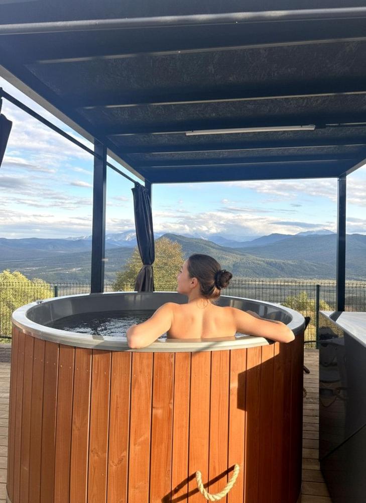 В домике: двуспальная кровать, мини-кухня, ванная комната и все необходимые для проживания бытовые принадлежности (полотенца, халаты и пр.). В домах идеальная для проживания температура, имеются обогреватели и кондиционеры.