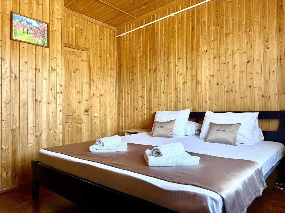 Стандартная комната в доме из натурального сруба сосны. Комната для 2-х гостей имеет все необходимое для Вашего комфортного отдыха: ⠀ - спальня с удобной 2х спальной кроватью (при необходимости кровать можно разделить на две раздельные) - вешалки и полочки для хранения вещей - сан. узел с душевой кабиной - стол - электрочайник - посуда для чая\кофе В стоимость проживания входит пользование парковкой, мангалом, беседкой. Можно заказать просторную баню за отдельную плату или маленькую баньку с холодным или теплым чаном. Рядом: горы, лес, озеро, река Белая с подвесным мостом, прекрасные места для фотосессии/ Можно приобрести завтраки в соседнем отеле в 500м от гостевого дома Тхач - в гостевом доме Горное озеро.