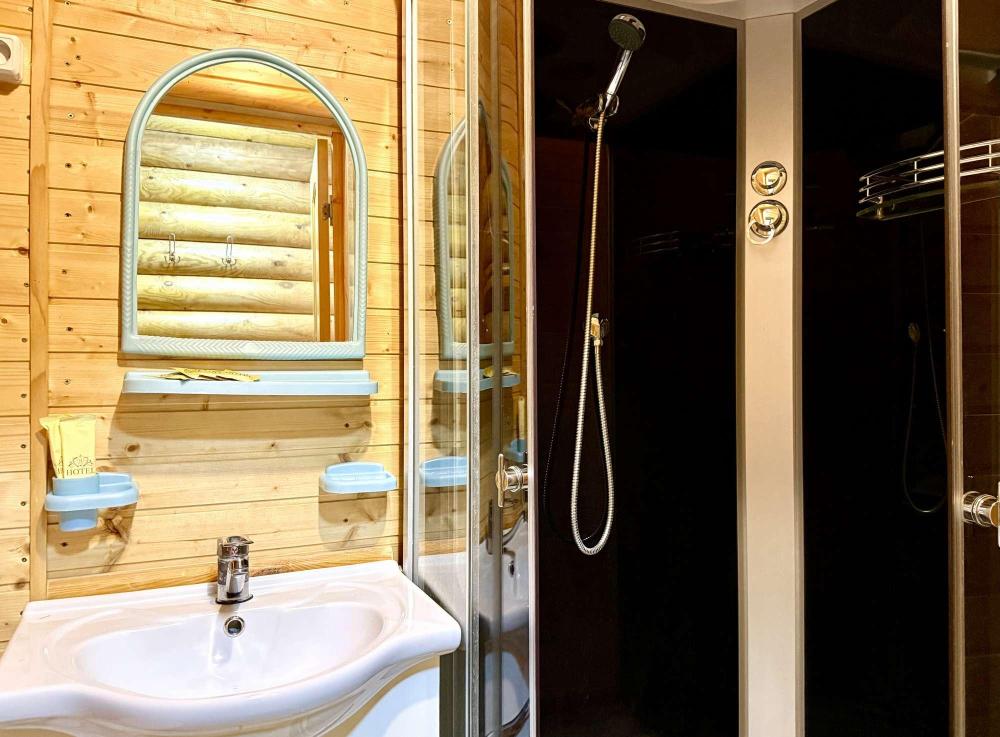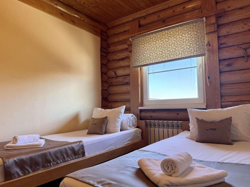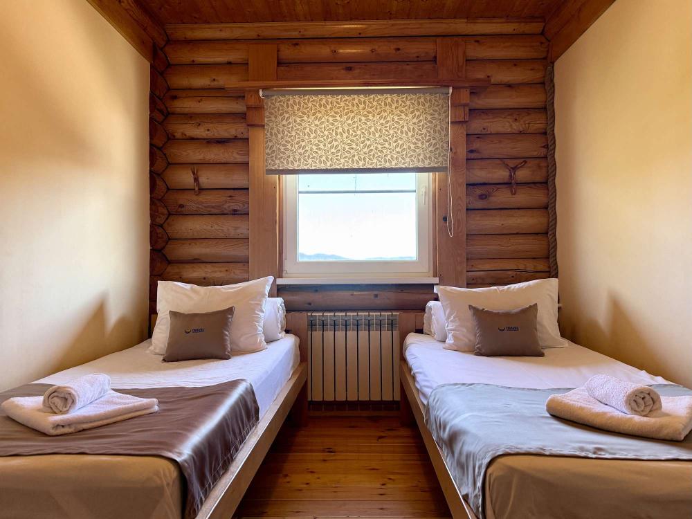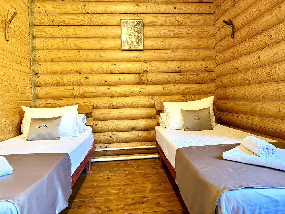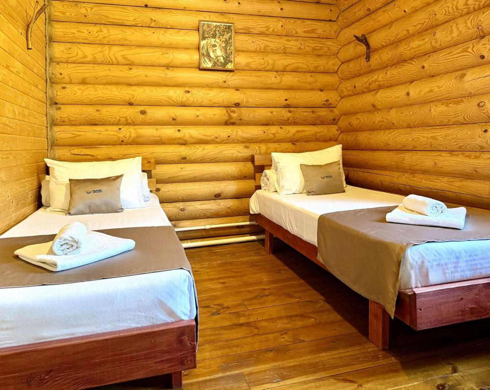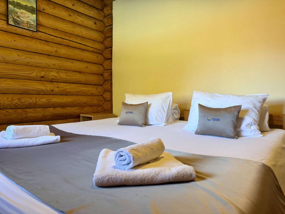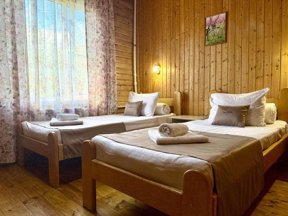Уютная комната на 2-х (возможно дополнительное место — еврораскладушка), оборудована всем необходимым для комфортного проживания. В распоряжении Гостей: ᅳ ванная комната (душ/туалет/раковина) ᅳ 2 односпальные кровати ᅳ необходимые косметические и гигиенические средства (шампунь, мыло, гель) ᅳ необходимый комплект домашнего текстиля ᅳ телевизор ᅳ холодильник ᅳ фен (на рецепшне). Дополнительные услуги: - русская баня/чан под открытым небом— 2000 руб/час, не менее 2-х часов - беседки на территории — бесплатно - мангал — бесплатно - дрова — 1 вязанка 250 руб - рыбалка — аренда удочки - 500 руб в день, выловленная рыба — 250 руб за кг (при ловле на свою удочку оплата выловленной рыбы также 250 руб за кг) - аренда ракеток для настольного тенниса - 500 руб/час - утюг — бесплатно в общем доступе - экскурсии - по прайсу