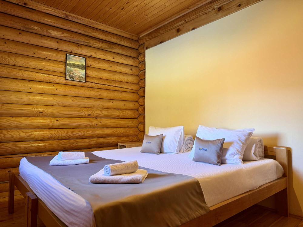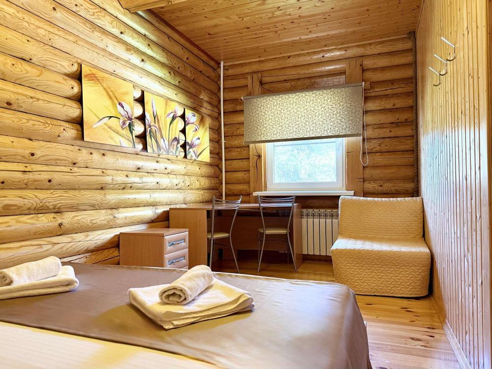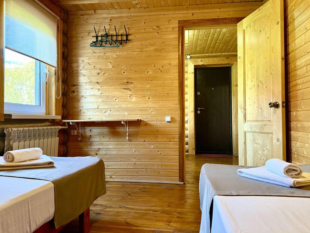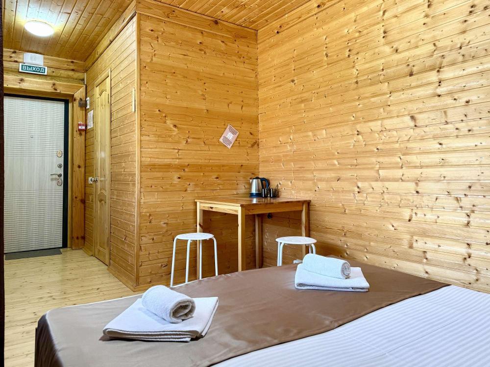 Уютный однокомнатный номер на 4х (возможно дополнительное место - еврораскладушка) , оборудованный всем необходимым для комфортного проживания. В распоряжении Гостей: ᅳ ванная комната (душ/туалет/раковина) ᅳ одна 2-спальная кровать и 2 односпальные кровати ᅳ необходимые косметические и гигиенические средства (шампунь, мыло, гель) ᅳ необходимый комплект домашнего текстиля ᅳ телевизор ᅳ холодильник ᅳ фен (на рецепшне). Дополнительные услуги: - русская баня/чан под открытым небом— 2000 руб/час, не менее 2-х часов - беседки на территории — бесплатно - мангал — бесплатно - дрова — 1 вязанка 250 руб - рыбалка — аренда удочки - 500 руб в день, выловленная рыба — 250 руб за кг (при ловле на свою удочку оплата выловленной рыбы также 250 руб за кг) - аренда ракеток для настольного тенниса - 500 руб/час - утюг — бесплатно в общем доступе - экскурсии - по прайсу