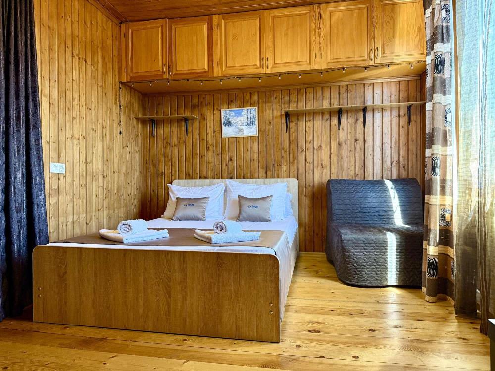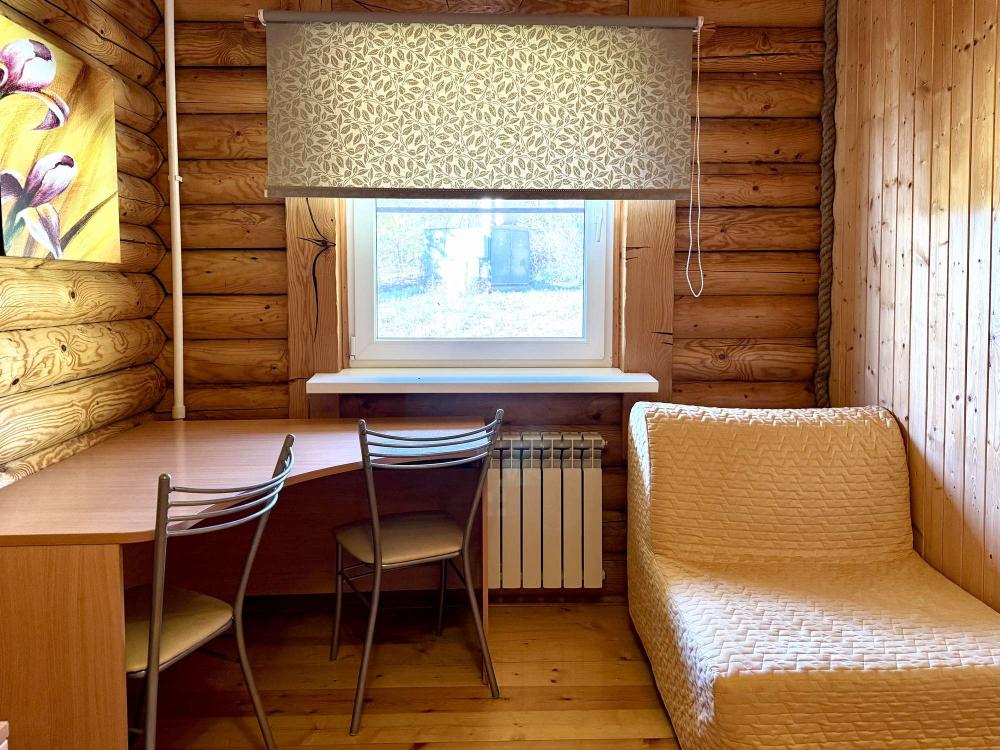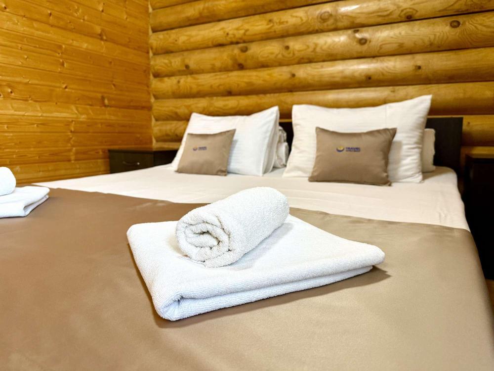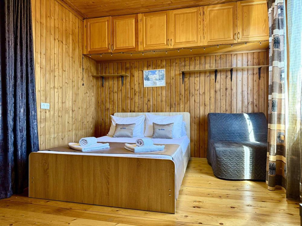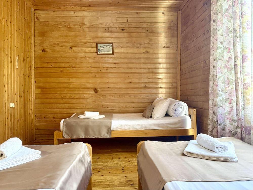 Уютный однокомнатный номер на 4х (возможно дополнительное место - еврораскладушка) , оборудованный всем необходимым для комфортного проживания. В распоряжении Гостей: ᅳ ванная комната (душ/туалет/раковина) ᅳ одна 2-спальная кровать и 2 односпальные кровати ᅳ необходимые косметические и гигиенические средства (шампунь, мыло, гель) ᅳ необходимый комплект домашнего текстиля ᅳ телевизор ᅳ холодильник ᅳ фен (на рецепшне). Дополнительные услуги: - русская баня/чан под открытым небом— 2000 руб/час, не менее 2-х часов - беседки на территории — бесплатно - мангал — бесплатно - дрова — 1 вязанка 250 руб - рыбалка — аренда удочки - 500 руб в день, выловленная рыба — 250 руб за кг (при ловле на свою удочку оплата выловленной рыбы также 250 руб за кг) - аренда ракеток для настольного тенниса - 500 руб/час - утюг — бесплатно в общем доступе - экскурсии - по прайсу