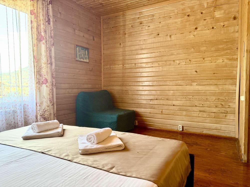 Уютный домик у подножия гор. Позвольте себе насладиться комфортом и природой в нашем двухэтажном домике, идеально подходящем для отдыха до 8 гостей. В этом просторном и хорошо оборудованном жилье вы найдете: - Две двухспальные кровати, две односпальные кровати и двуспальный диван, - Удобная ванная комната с душем, туалетом и раковиной, - Кондиционер на втором этаже для вашего комфорта, - Все необходимые косметические и гигиенические средства (шампунь, мыло, гель), - Полный комплект домашнего текстиля, - Уютная кухня с микроволновой печью, чайником и мини-холодильником, - Фен и тапочки для вашего удобства. В домике отсутствует телевизор, WI-FI и центральное отопление (отоплением служит сплит-система на 2 этаже и калорифер). Возможно дополнительное место на евро-раскладушке за дополнительную плату. Наш домик подарит вам незабываемые моменты отдыха и гармонии с природой. Забронируйте сейчас и наслаждайтесь каждым мгновением! Важно: Заселение после 23-00 платное: 200₽. Дополнительные услуги: - русская баня/чан под открытым небом— 5000 руб/2часа - беседки на территории — бесплатно - мангал — бесплатно - дрова — 1 вязанка 250 руб - рыбалка — аренда удочки - 500 руб в день, выловленная рыба — 250 руб за кг (при ловле на свою удочку оплата выловленной рыбы также 250 руб за кг) - аренда ракеток для настольного тенниса - 500 руб/час - утюг — бесплатно в общем доступе - детская кроватка - по запросу (бесплатно) - экскурсии - по прайсу.
