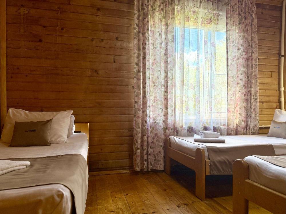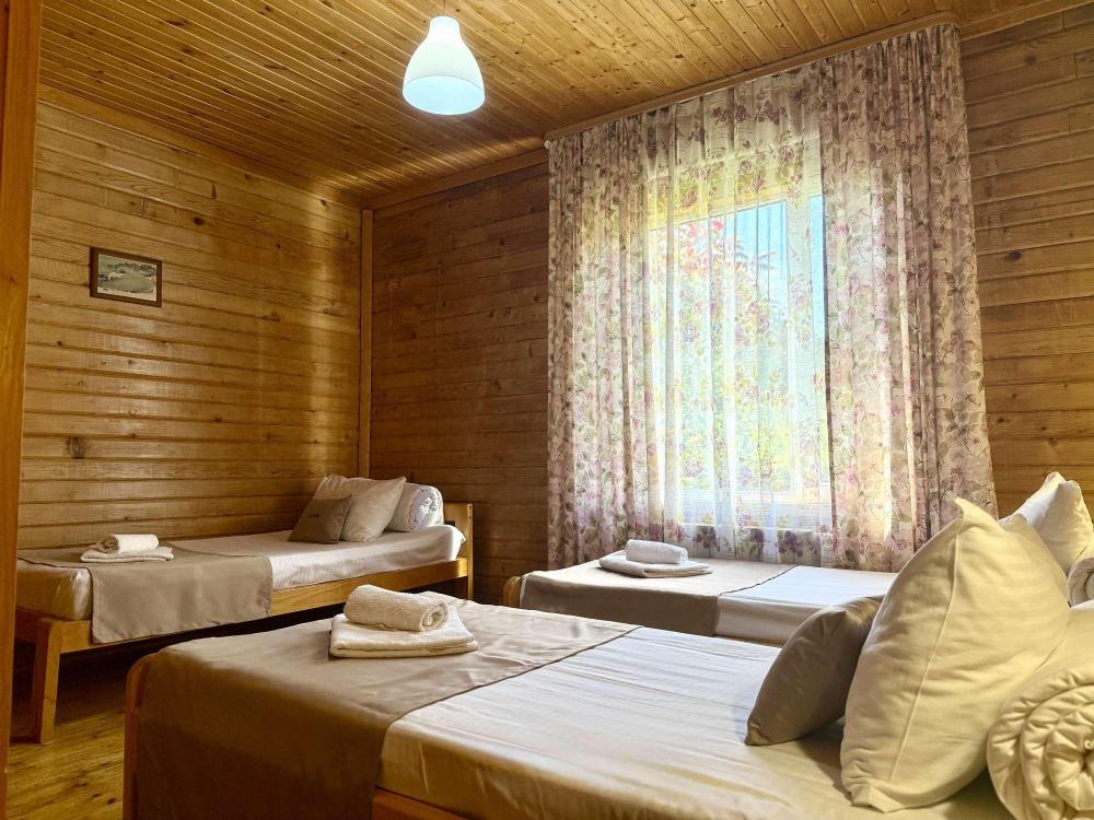 Просторная 4х местная комната с выходом на террасу в доме из натурального сруба сосны. В распоряжении гостей: - 2 спальные зоны с 2-спальными кроватями (при необходимости кровать можно разделить на две раздельные) - оборудованная кухонная зона: электрочайник, мини-холодильник, индукционная плита, посуда и кухонные принадлежности - сан. узел с душевой кабиной - вешалки и полочки для хранения вещей - удобный балкон-веранда. В стоимость проживания входит пользование парковкой, мангалом, беседкой. Можно заказать просторную баню за отдельную плату или маленькую баньку с холодным или теплым чаном. Рядом: горы, лес, озеро, река Белая с подвесным мостом, прекрасные места для фотосессии. Можно приобрести завтраки в соседнем отеле в 500м от гостевого дома Тхач - в отеле Горное озеро.