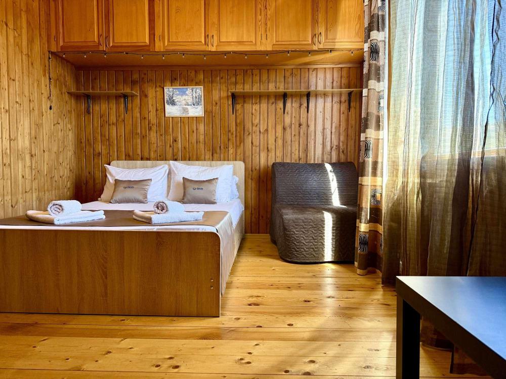 Уютный однокомнатный номерна 2х, категории стандарт (возможно дополнительное место - еврораскладушка) , оборудованный всем необходимым для комфортного проживания. В распоряжении Гостей: ᅳ ванная комната (душ/туалет/раковина) ᅳ двуспальная кровать ᅳ необходимые косметические и гигиенические средства (шампунь, мыло, гель) ᅳ необходимый комплект домашнего текстиля ᅳ телевизор ᅳ холодильник ᅳ фен (на рецепшне). Дополнительные услуги: - русская баня/чан под открытым небом— 2000 руб/час, не менее 2-х часов - беседки на территории — бесплатно - мангал — бесплатно - дрова — 1 вязанка 250 руб - рыбалка — аренда удочки - 500 руб в день, выловленная рыба — 250 руб за кг (при ловле на свою удочку оплата выловленной рыбы также 250 руб за кг) - аренда ракеток для настольного тенниса - 500 руб/час - утюг — бесплатно в общем доступе - экскурсии - по прайсу