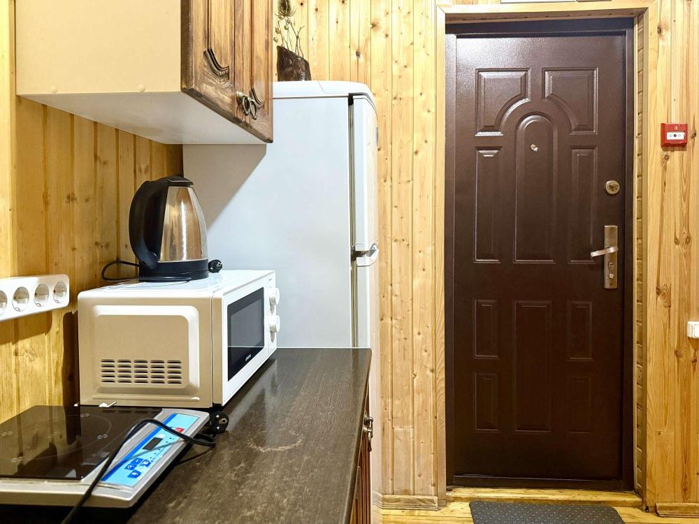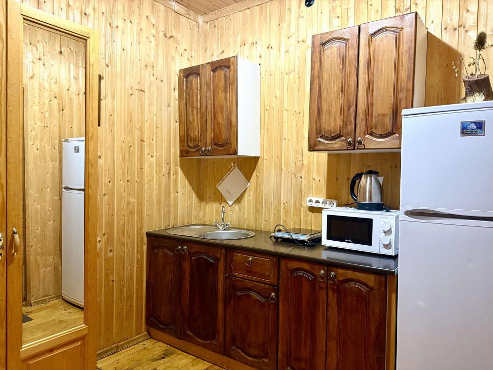 Комфортная 2-местная комната с кухней, спальной зоной и сан. узлом с душевой кабиной. ⠀ В комнате удобная двуспальная кровать (при необходимости кровать можно разделить на две раздельные), вешалки и полочки для хранения вещей. Кухонный уголок оборудован необходимой бытовой техникой и кухонными принадлежностями (чайник, индукционная плита, холодильник, посуда и столовые приборы). Также к услугам гостей туалетно-косметические принадлежности, банные полотенца. В стоимость проживания входит пользование парковкой, мангалом, беседкой. Можно заказать просторную баню за отдельную плату или маленькую баньку с холодным или теплым чаном. Рядом: горы, лес, озеро, река Белая с подвесным мостом, прекрасные места для фотосессии. Можно приобрести завтраки в соседнем отеле в 500м от гостевого дома Тхач - в гостевом доме Горное озеро.