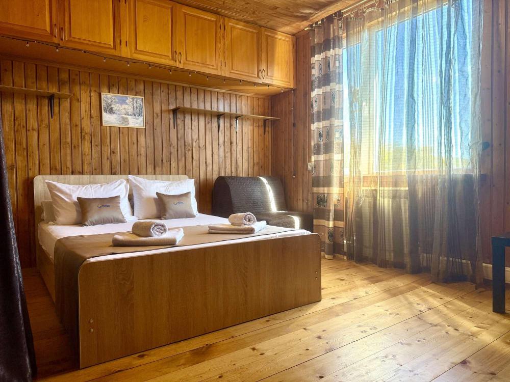Улучшенный однокомнатный номер , оборудованный всем необходимым для комфортного проживания. Из окна открывается потрясающий вид на горы. В распоряжении Гостей: ᅳ ванная комната (душ/туалет/раковина) ᅳ двуспальная кровать ᅳ необходимые косметические и гигиенические средства (шампунь, мыло, гель) ᅳ необходимый комплект домашнего текстиля ᅳ телевизор ᅳ холодильник ᅳ чайная станция ᅳ фен (на ресепшене)