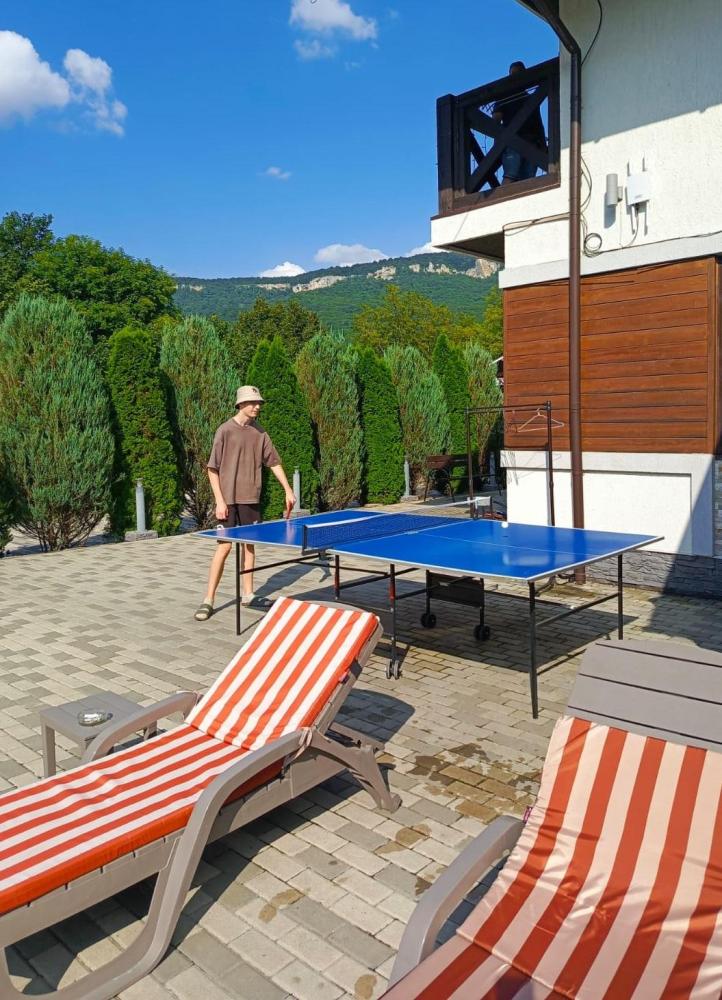 Номер с двухспальной кроватью, раскладным диваном, балконом с видом на горы и лес, холодильником, сплит-системой, санузел (туалет, умывальник, душ, фен), тапочками и полотенцами, чайником, столиком для четверых человек, спутниковый тв;