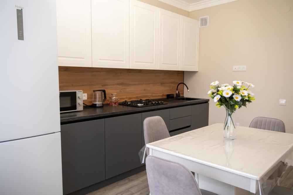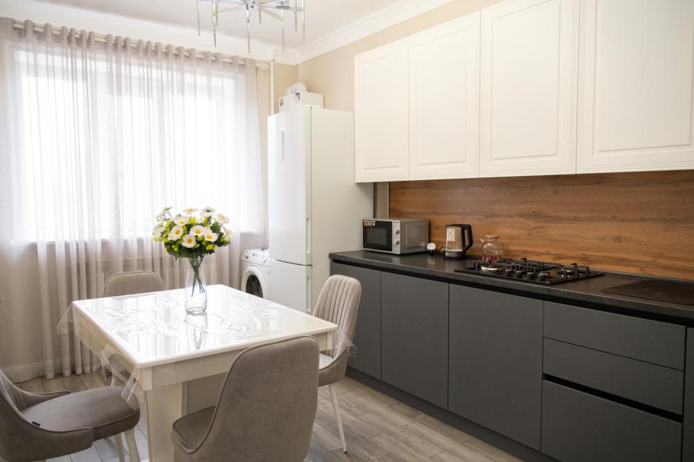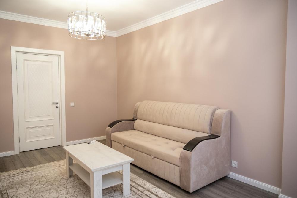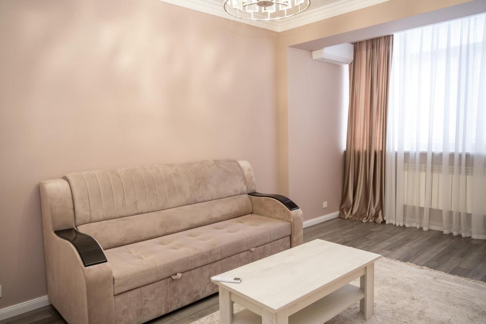 Сдается новая, чистая, уютная, комфортабельная квартира в центре города (напротив мультимедийного фонтана) со всем необходимым. * 4 удобных спальных места для полноценного отдыха и здорового сна. Двуспальная кровать и с качественным матрасом + раскладывающийся диван. * Наши гости могут готовить на полностью оборудованной кухне с бытовой техникой и посудой. Есть электрическая плита, эл.чайник,СВЧ-печь, холодильник. * Автоматическая стиральная машина и утюг позволяют сохранить чистоту и аккуратный внешний вид. * Всегда свежие полотенца и постельное белье. * Ванная комната с чистой и исправной сантехникой, всегда горячая и холодная вода. * Интернет и ТВ для вашей работы и отдыха. * Открытая парковка во дворе дома, где можно оставить машину безопасно под видеокамерой. * Полное соответствие фотографиям. В шаговой доступности супермаркеты, кафе, рестораны. * Если вы путешествуете с детьми, то они могут весело провести время в детском центре, расположенном в доме, либо на детской площадке. * Достаточно внести предоплату, остаток суммы при заселении. * За каждое бронирование вам начисляется кэшбек, который можно потратить на будущие поездки. * У нас бесконтактное заселение, в любое удобное для вас время. !!!Внимание!!! В квартире запрещено курить. Не сдается для для увеселительных мероприятий и гостям моложе 20 лет. !!!Расчетный час до 12.00!!! Заселение с 14.00 При себе иметь паспорт.