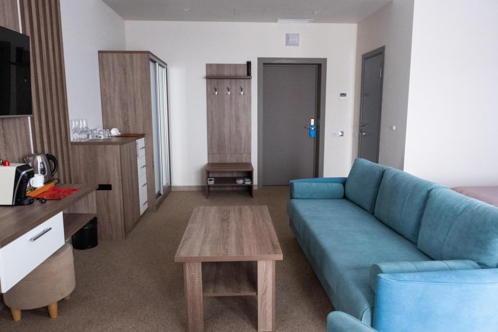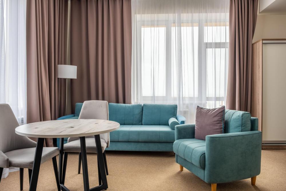 Однокомнатный номер площадью 35 м², в котором каждая деталь продумана для безупречного отдыха. Элегантное пространство с двуспальной кроватью, зоной отдыха с диваном и журнальным столиком, а также балконом, где можно насладиться свежим воздухом и видом. В номере — кондиционер, телевизор, мини-холодильник, чайная станция и ванная комната с душевой кабиной. Подходит для комфортного размещения до трёх человек. Идеальное сочетание стиля, уюта и свободы пространства.