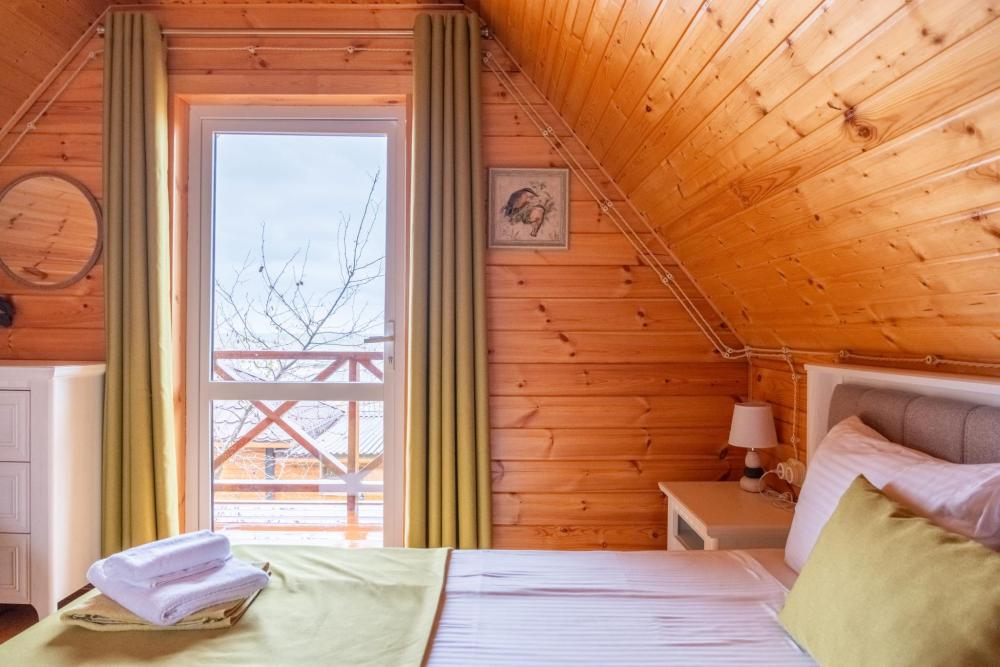 Двухэтажный коттедж с балконом и видом на море - отличный вариант для пар с детьми или семейных гостей. В коттедже имеется гостиная с кухней и спальня. На кухне имеется все необходимое для приготовления пищи.