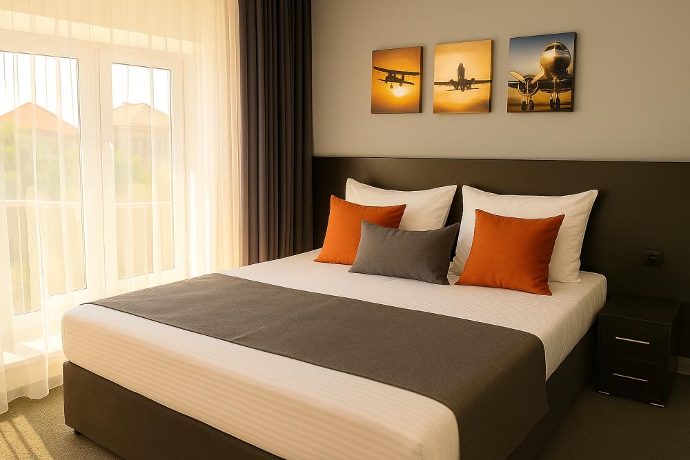 Комфортный номер со своим балконом и видом на море. В номере: двухспальная кровать, односпальная кровать, прикроватные тумбочки, шкаф, телевизор, кондиционер, холодильник, чайник, ванная комната с душем, набор полотенец, туалетно-гигиенические принадлежности.