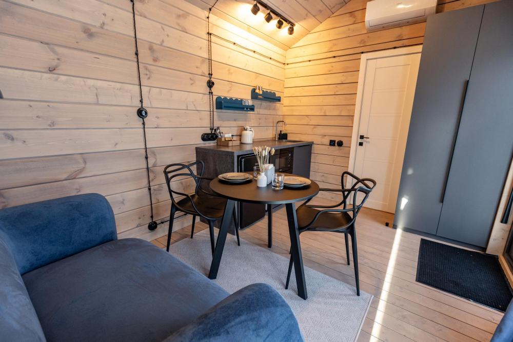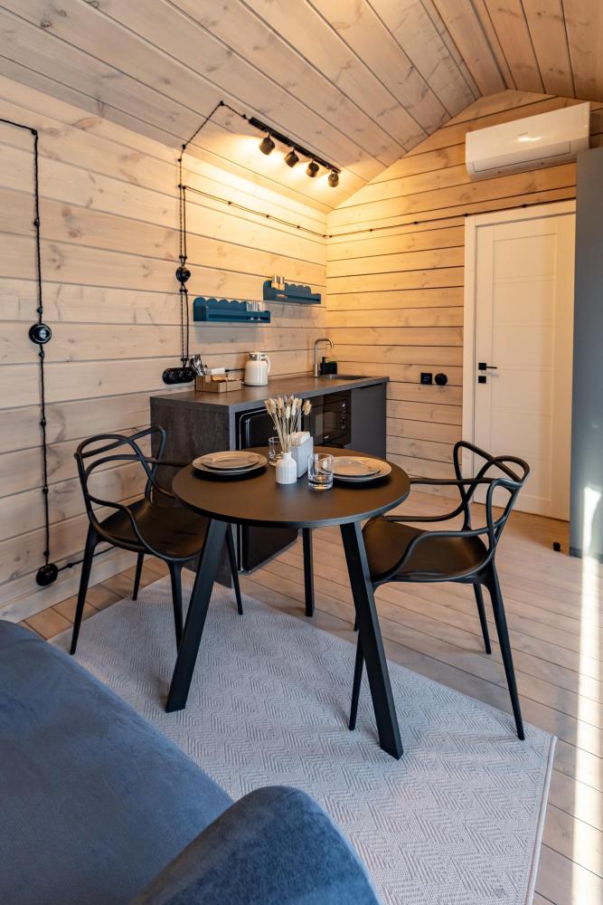 Небольшой уютный домик для двоих с панорамными окнами и собственной террасой. Здесь приятно встречать утро с видом на природу и проводить тихие вечера на свежем воздухе. Домик полностью оборудован для комфортного проживания и создан для неспешного отдыха вдали от городской суеты.