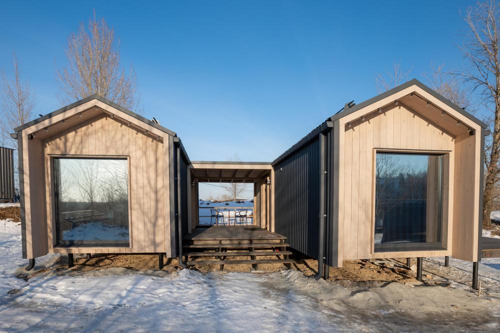 Каждая часть оборудована всем необходимым для проживания, а общая терраса становится центром отдыха: здесь удобно собираться, завтракать на свежем воздухе или проводить тёплые вечера в окружении природы. Отлично подойдёт для пар, друзей или семьи, которые ценят уют, тишину и близость к природе. Уютный формат для комфортного отдыха компанией или семьёй. Дом состоит из двух отдельных жилых частей, соединённых общей террасой, что позволяет проводить время вместе, сохраняя личное пространство.