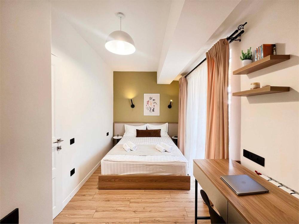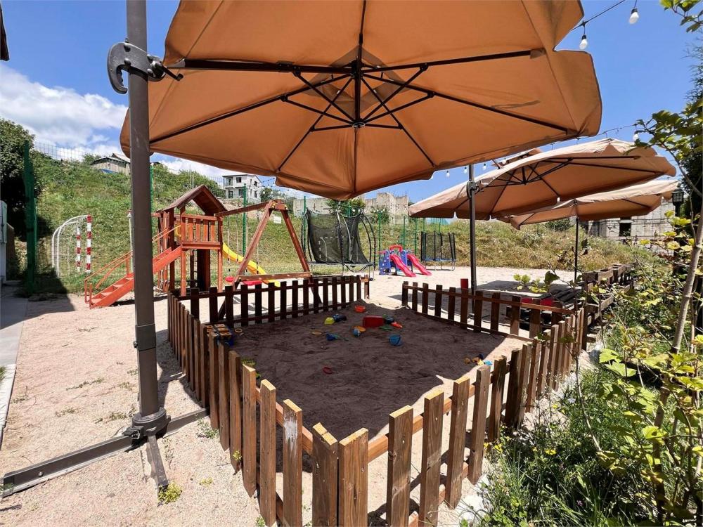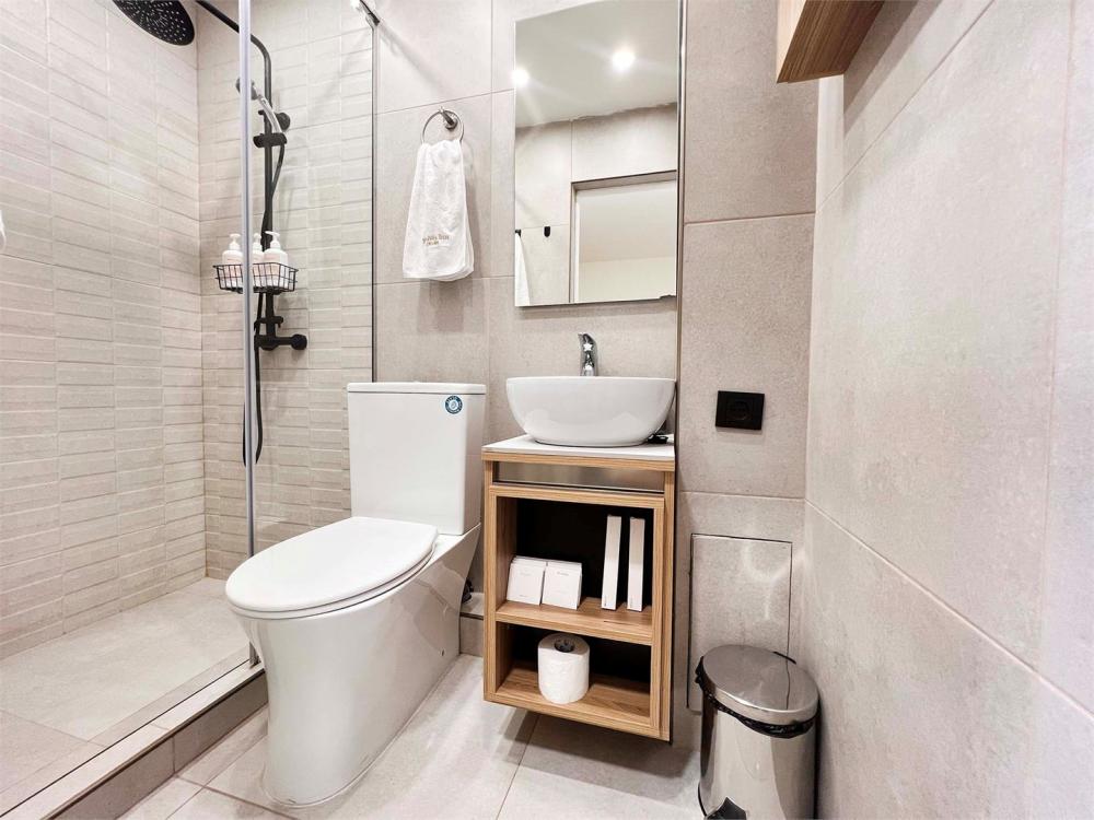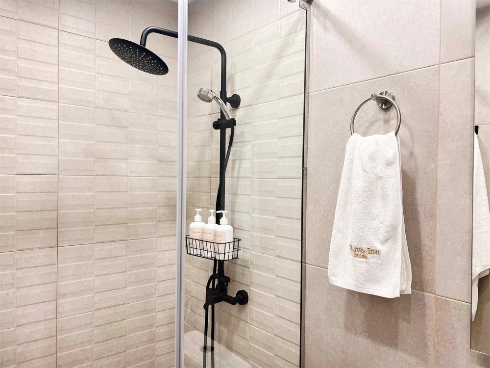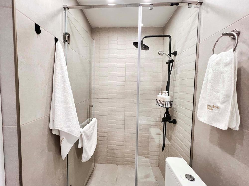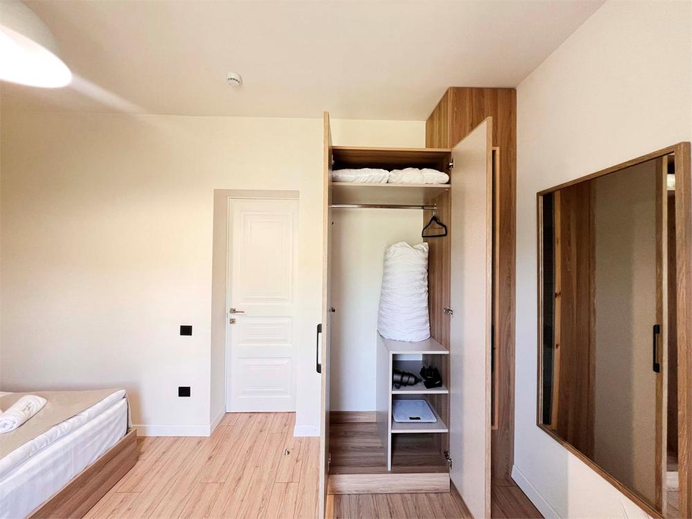 Семейный номер с камином. Просторный семейный номер располагает стиральной машиной, террасой с видом на внутренний двор, а также собственной ванной комнатой с душем. В номере установлены одна двуспальная и 2 односпальные кровати.