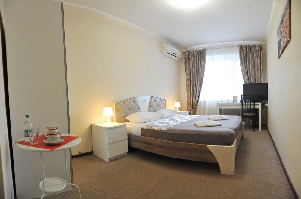 Очень удобный, функциональный номер с двуспальной кроватью. В номере: интернет wi-fi бесплатно, ЖК телевизор со спутниковым телевидением, кондиционер, комод, душ, фен, шампунь и гель для душа, зубной набор, бритвенный набор, расческа, набор махровых полотенец, чайный набор.