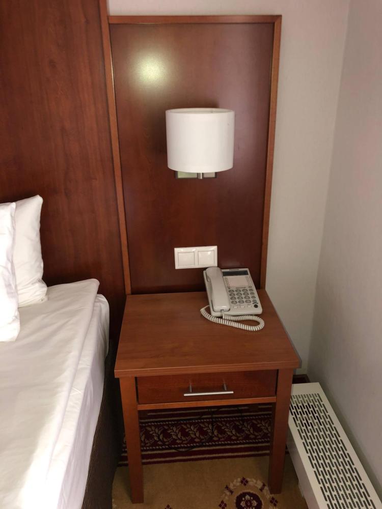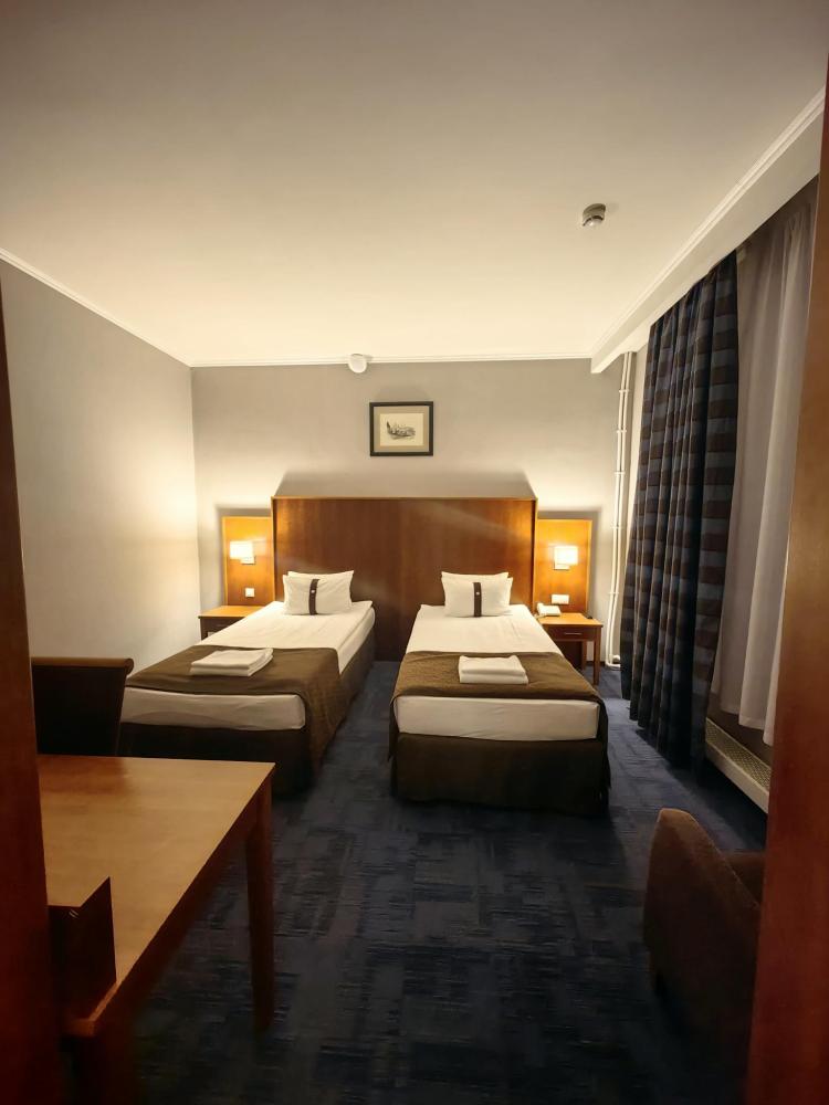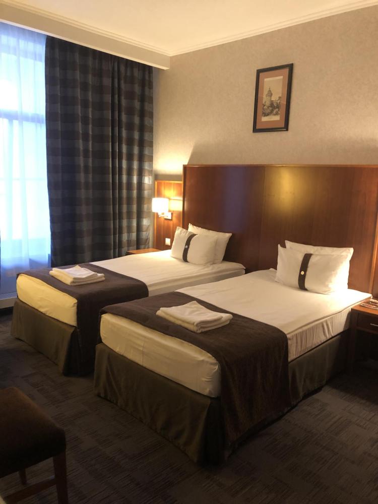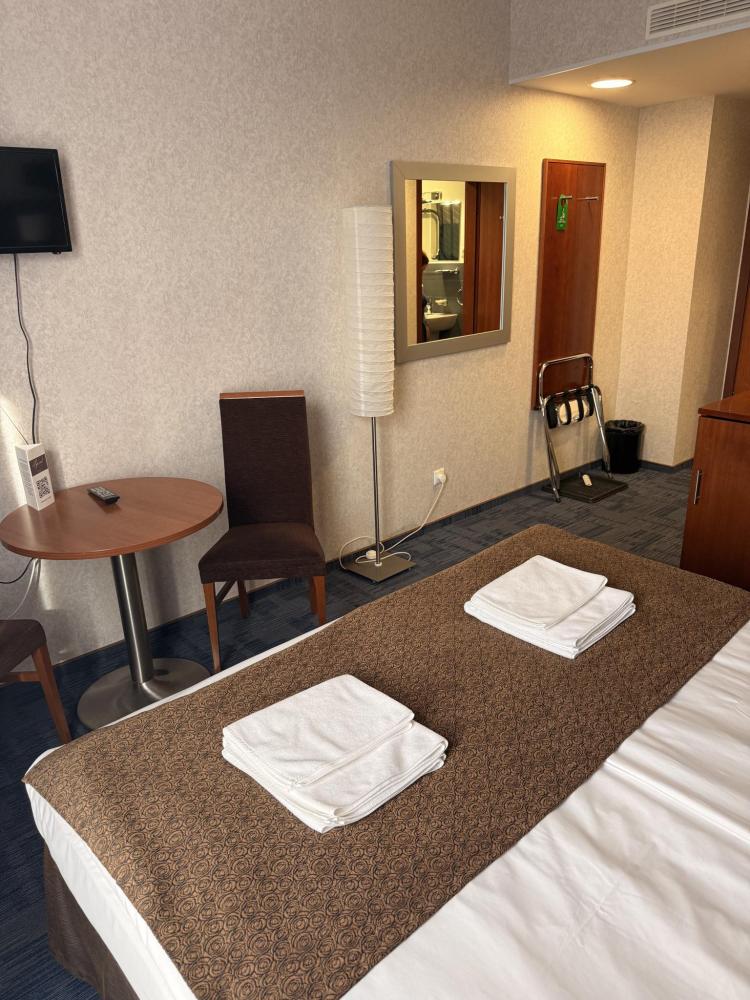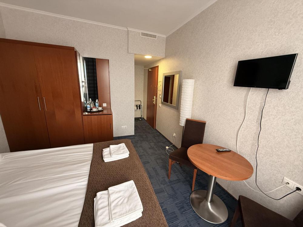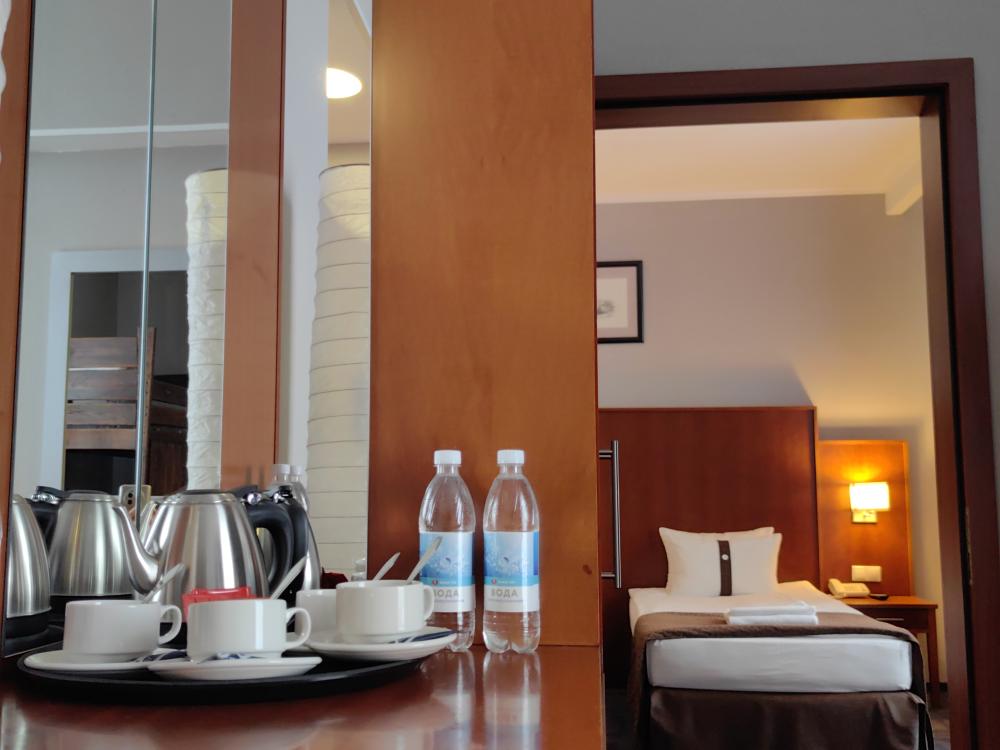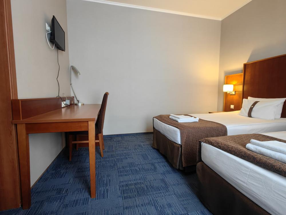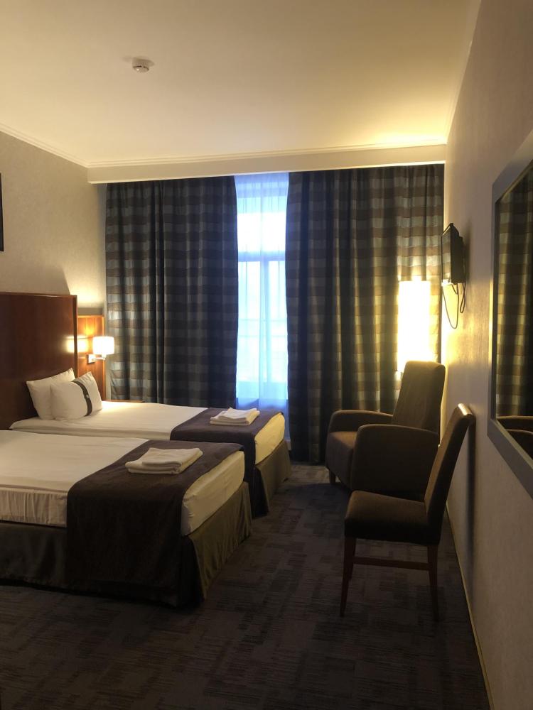 Номер стандарт вместимостью до 2 человек. В распоряжении гостей: две односпальные кровати, постельное белье и полотенца, светонепроницаемые шторы, телевизор, сейф, холодильник, чайник, посуда, шкаф с полками и плечиками, гигиенические принадлежности, фен.