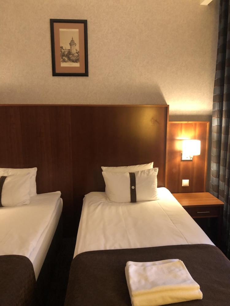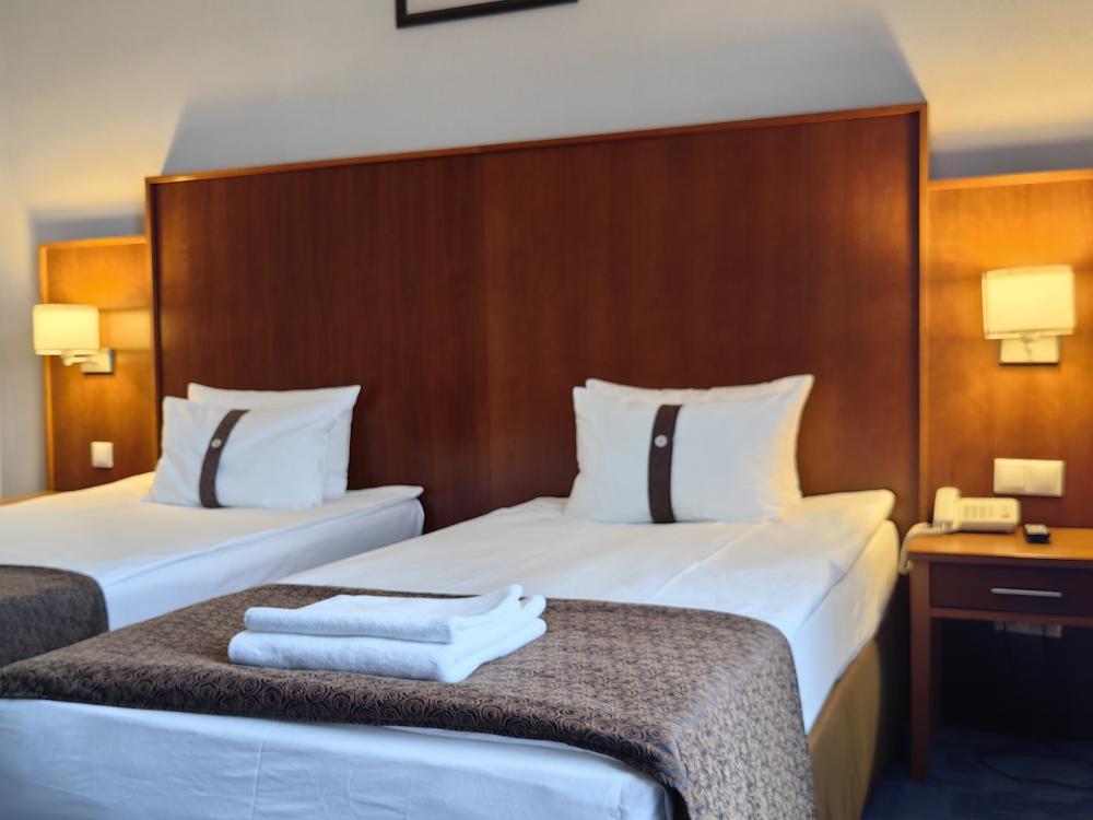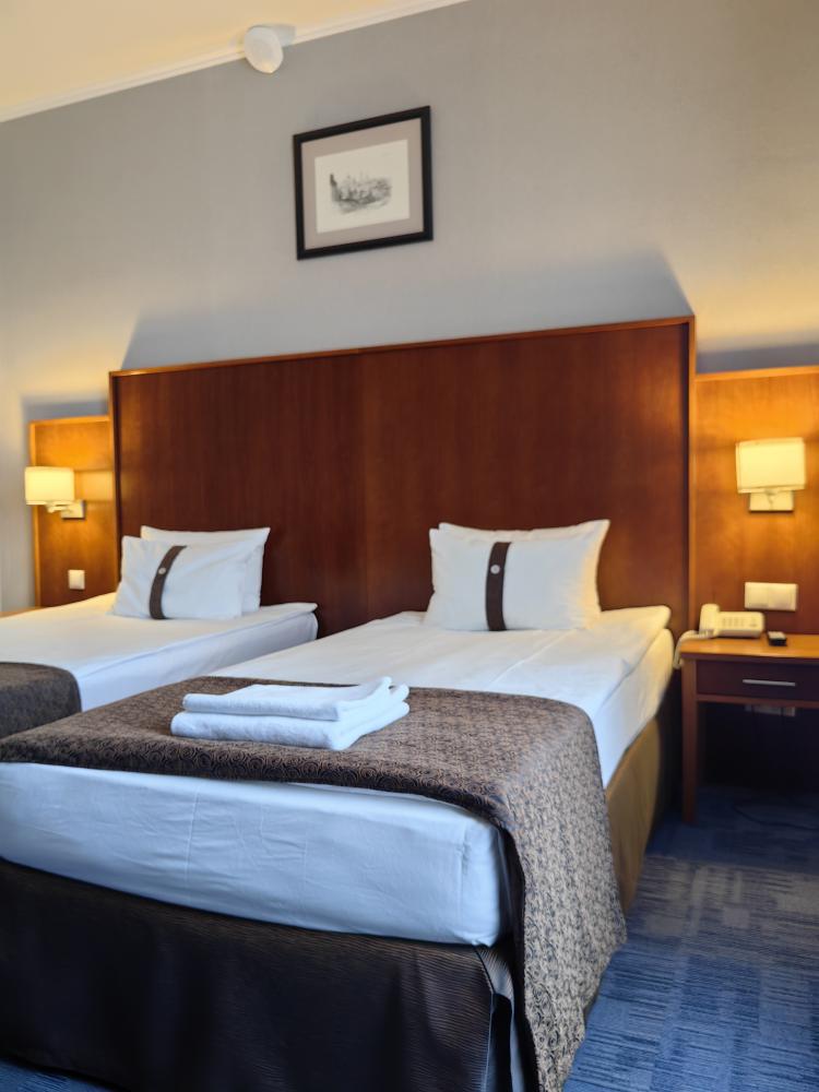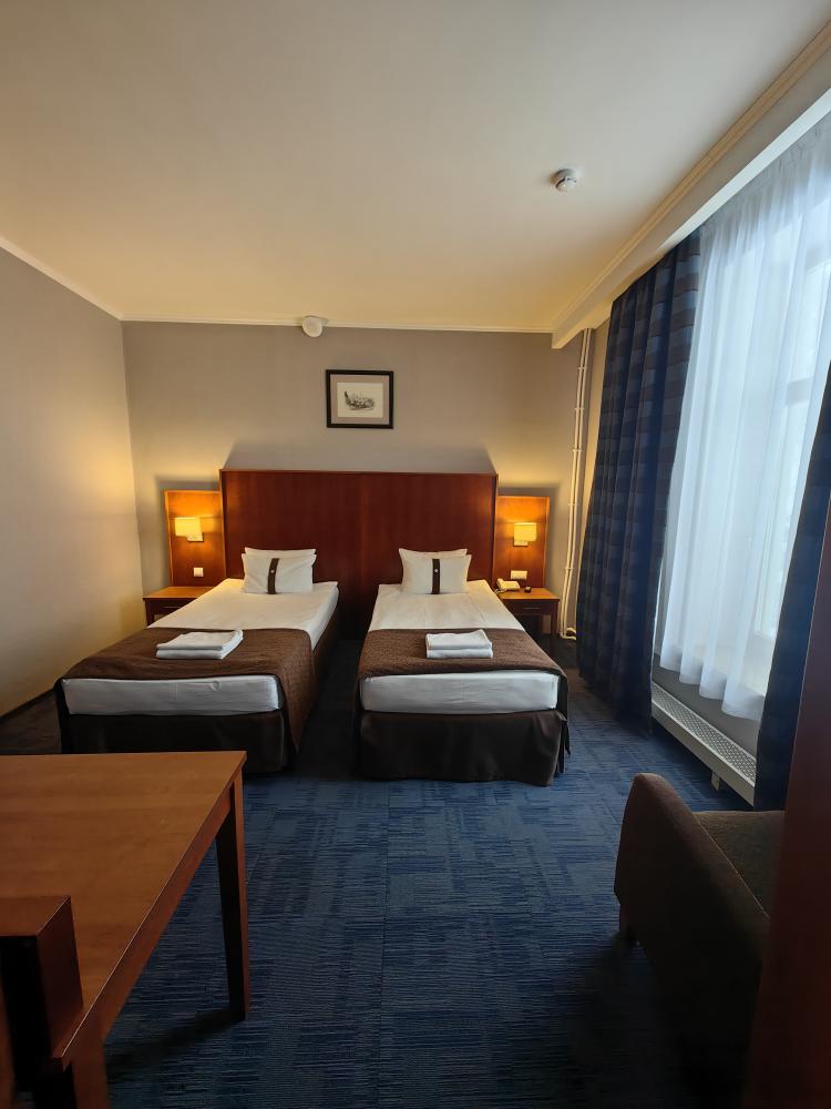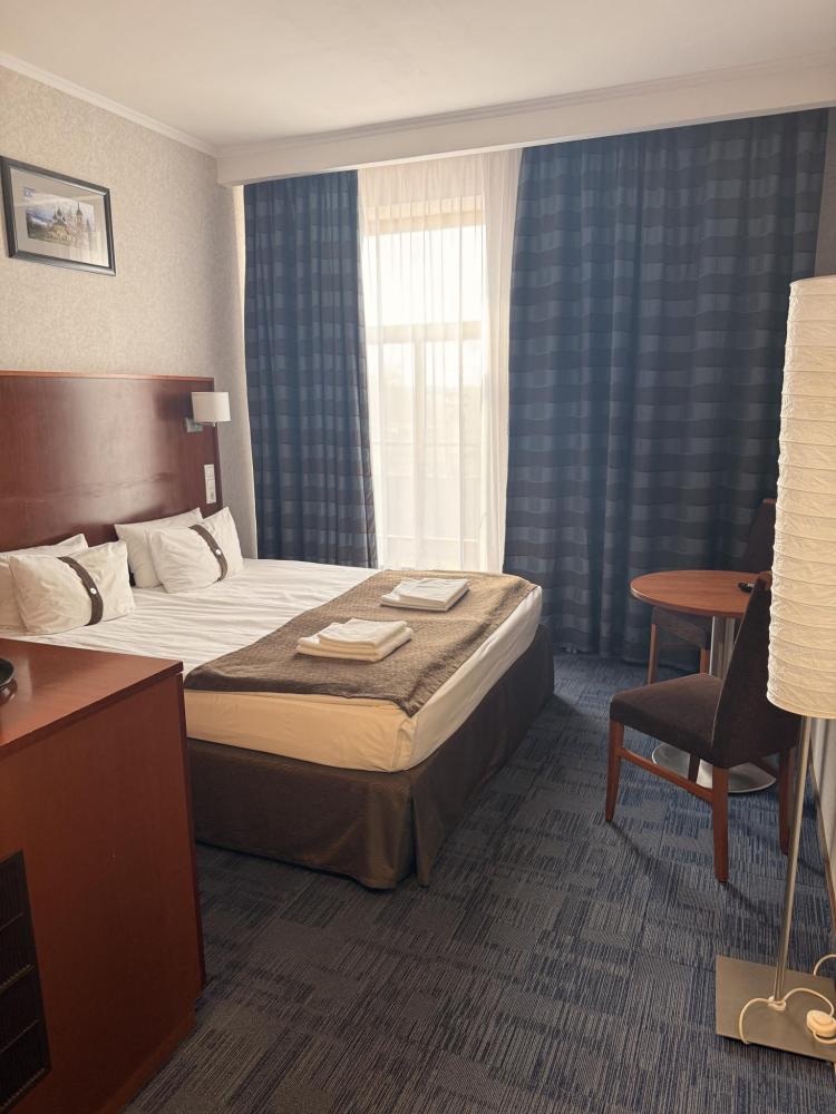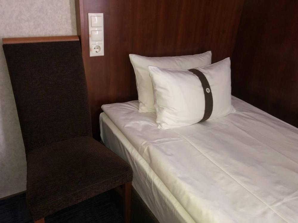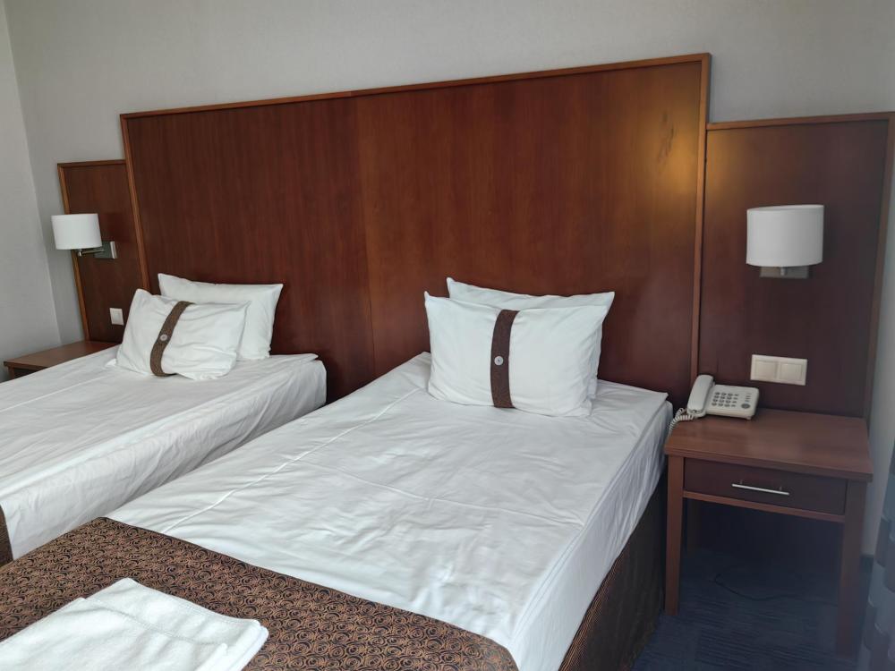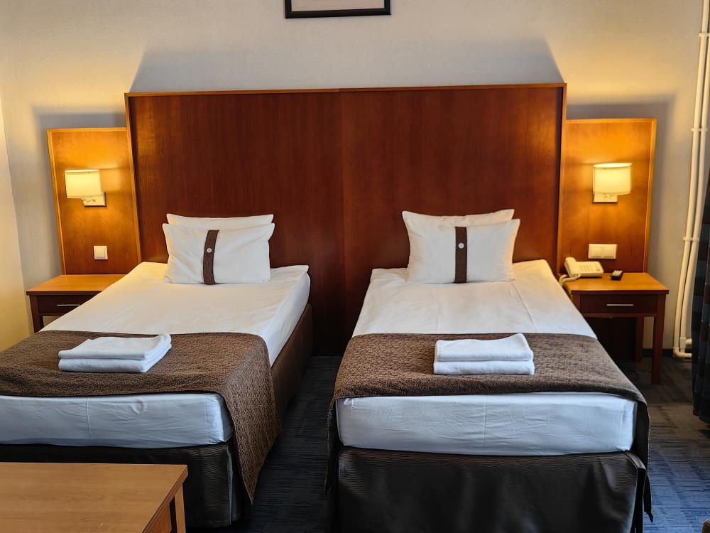 Номер стандарт вместимостью до 2 человек. В распоряжении гостей: две односпальные кровати, постельное белье и полотенца, светонепроницаемые шторы, телевизор, сейф, холодильник, чайник, посуда, шкаф с полками и плечиками, гигиенические принадлежности, фен.