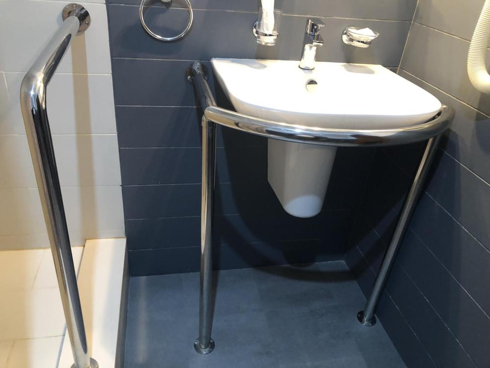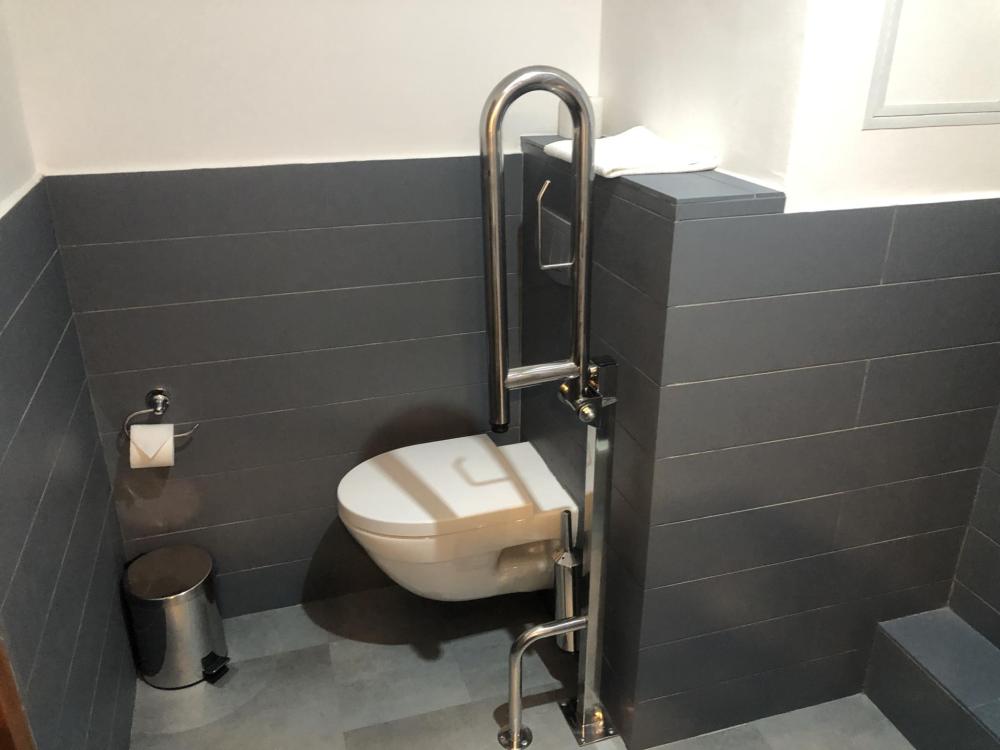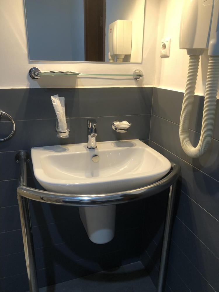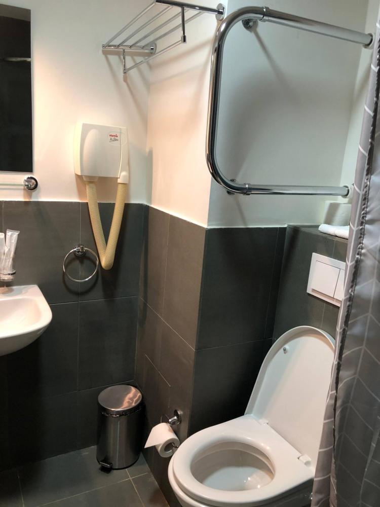 Номер комфорт для людей с ограниченными возможностями вместимостью до 2 человек. Номер специально оборудован для проживания лиц с ограниченными возможностями здоровья. В комнате две односпальные кровати, прикроватные тумбы с настольными светильниками, платяной шкаф с вешалками и открытыми полками. Гостям предоставляется бытовая техника: телевизор, мини-холодильник, электрический чайник, базовый набор посуды. Санузел оборудован необходимыми приспособлениями для маломобильных групп населения: фиксированными металлическими поручнями возле унитаза и душа, обеспечивающими безопасность передвижения и пользования санитарными удобствами. Дополнительно Гостям предоставляются индивидуальные средства личной гигиены и фен. Номер расположен на 2 этаже, подъём без лифта. Возможен проход с улицы сразу на 2 этаж через пандус.