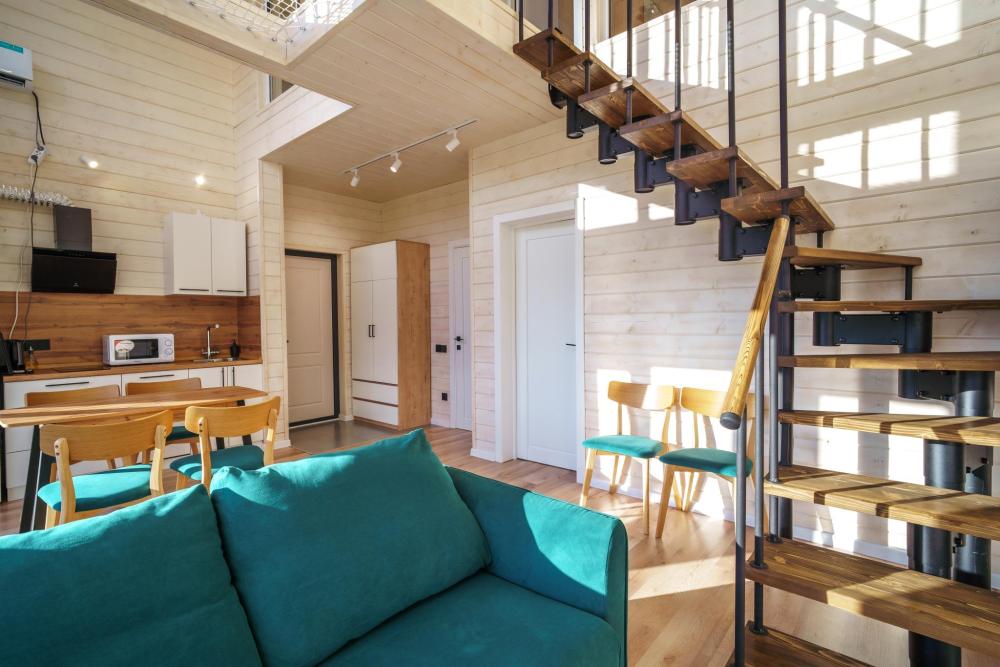 Коттедж стандарт Большая студия с кухонной зоной и раскладным диваном. Подойдет для одного гостя или пары.