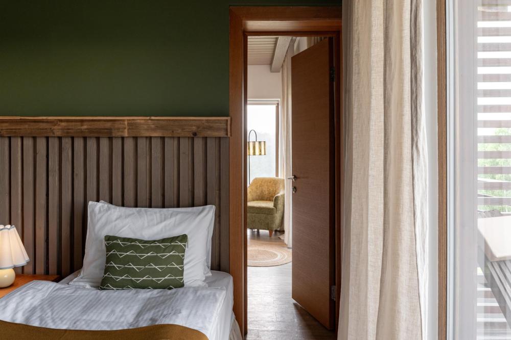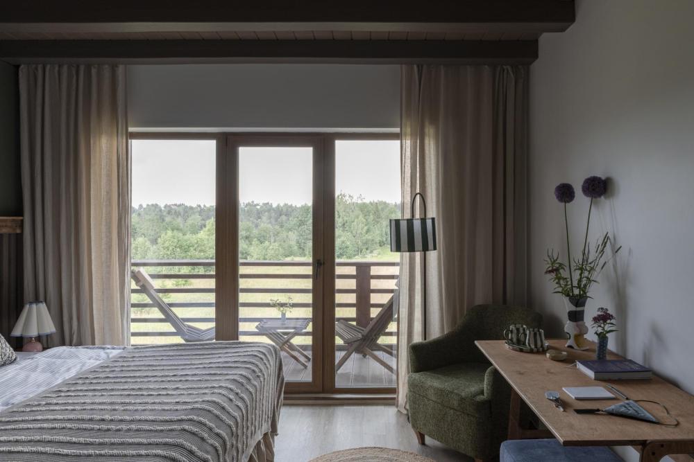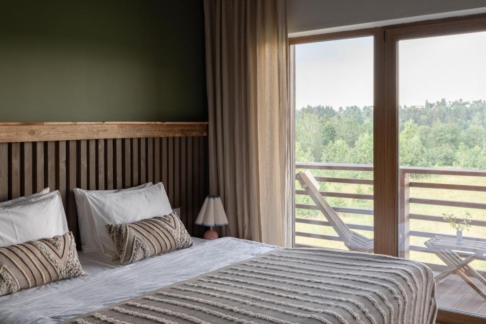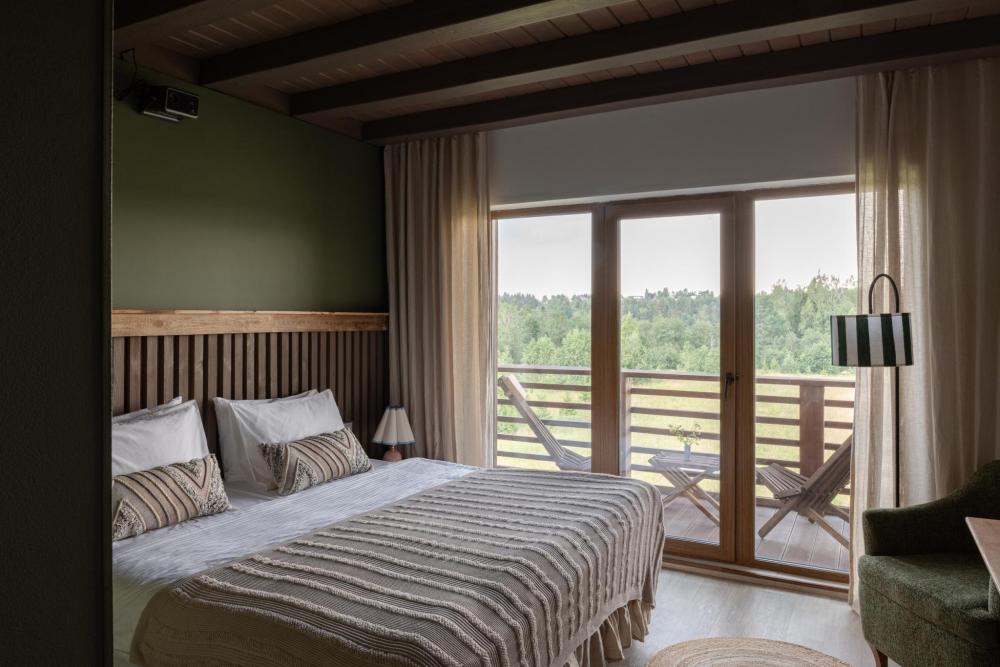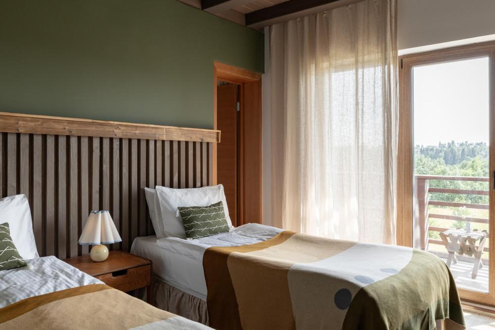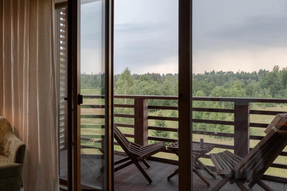 Стильный и удобный номер площадью 30 кв.м. оснащен всем необходимым для отдыха. Мы рады предложить одну двуспальную или две односпальные кровати на Ваш выбор. В номере: рабочая зона, проектор, беспроводной интернет, мини-холодильник, чайная станция, бутилированная вода и сейф. Ванная комната оснащена душевой кабиной, косметикой Zielinski & Rozen, набором индивидуальных банных принадлежностей, а также феном. В оформлении приняли участие бренд текстиля Tkano и марка редких ковров ручной работы Art de Vivre. Из панорамных окон открывается прекрасный вид на гольф поле. У каждого номера есть балкон с уютным столиком и креслами для созерцания. Для гостей отеля предоставляется бесплатное место на наземном паркинге. Возможно размещение детей на дополнительном спальном месте. Количество гостей: 3-4