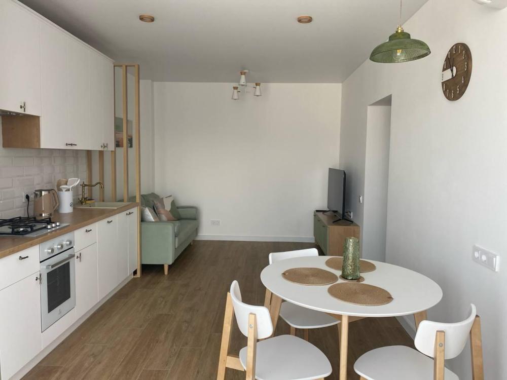 Новые апартаменты комфорт -класса в Доброграде | 4 гостя | Wi-Fi 100 Мбит/с Интерьер оформлен в духе экологичной минималистичности: светлое дерево, белые и зелёные акценты, натуральные текстуры и мягкий свет создают атмосферу свежести и уюта. Название «ECO Style» отражает философию бережного отношения к пространству, телу и духу — здесь всё дышит лёгкостью и заботой. Кухня с белыми фасадами, золотым смесителем и встроенной техникой — это сочетание функциональности и эстетики. Обеденная зона с круглым столом, плетёными салфетками и композицией из зелёных яблок и цветов — приглашение к неспешным завтракам и душевным разговорам. Гостиная с зелёным диваном и мягкими подушками — идеальное место для отдыха, чтения или общения. Деревянные перегородки и светлая отделка визуально расширяют пространство, наполняя его теплом и спокойствием. Спальня оформлена в природной палитре, с ортопедическим матрасом и текстилем из натуральных материалов — для глубокого сна и восстановления. Освещение и декор создают ощущение защищённости и тишины. - Комфортное размещение до 4-х человек - Закрытая территория с системой доступа - Полное оснащение для длительного проживания - Заезд после 14:00, выезд до 12:00 (возможен late check-out) - Возможность размещения с животными по согласованию Добро пожаловать в ECO Style — апартаменты, где каждая деталь работает на ваш покой, здоровье и вдохновение. Наполнение апартаментов • Двуспальная удобная кровать 160×200, матрас + раскладной диван 160×200 • Постельное бельё хлопок, подушки, тёплые одеяла • Smart-TV 43″, IP-телевидение, высокоскоростной интернет • Обеденная зона: стол, удобные стулья • Рабочая зона: широкий устойчивый стол, стул • Комод, 2 тумбочки + отдельная гардеробная • Кондиционер в кухне-гостиной Техника и мелочи Варочная газовая панель, духовой шкаф, посудомойка, стиральная машина, СВЧ, холодильник. Полный комплект посуды, ножи, бокалы. Фен, утюг, сушилка. Инфраструктура • Магазин в доме (08:30–20:30) • Рестораны Парк-отеля и большого парка – доставка за 15 мин., возможно позавтракать в отеле с 07:00 до 11:00 • Спорт: теннис, гольф, футбол, баскетбол, велотрассы, летом вейк-парк, зимой лыжи • SPA-комплекс с банями и открытым бассейном (5 мин пешком) Также возможен заказ продуктов и готовой еды через приложение ВкусВилл. Доставка до адреса бесплатная. До встречи в Доброграде!