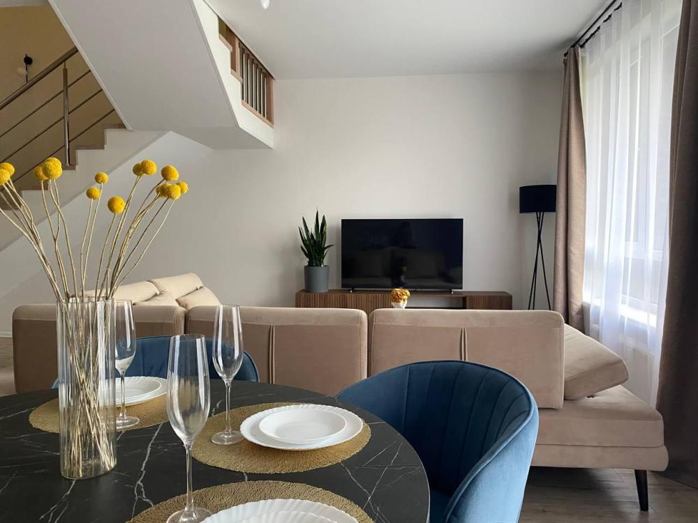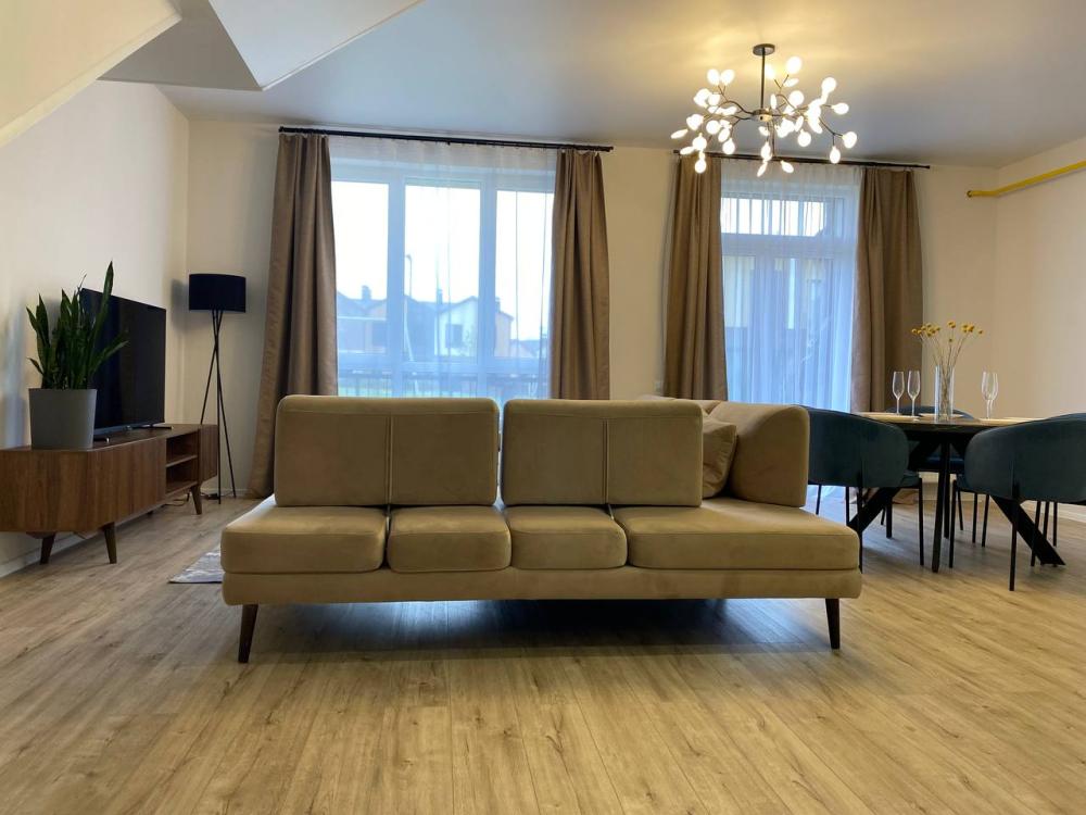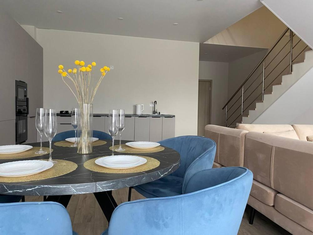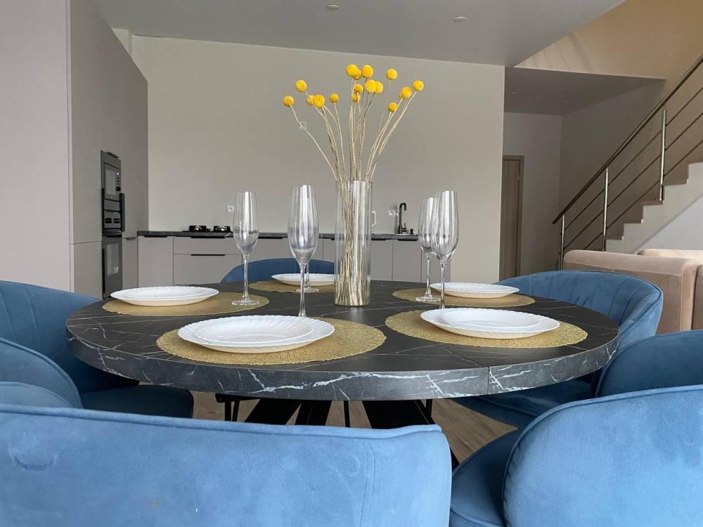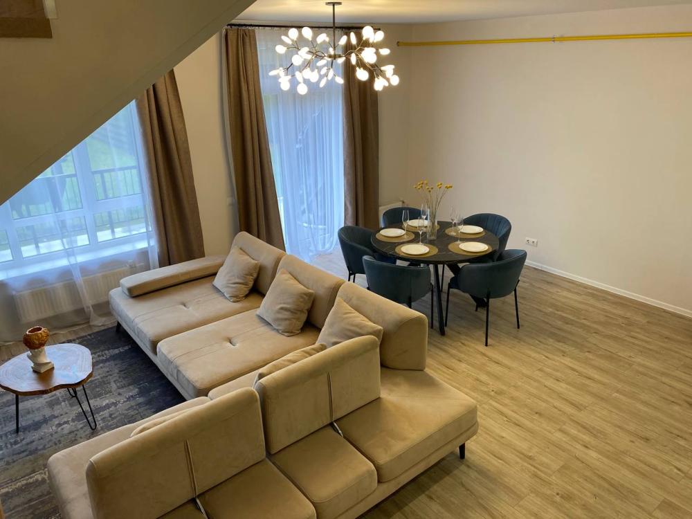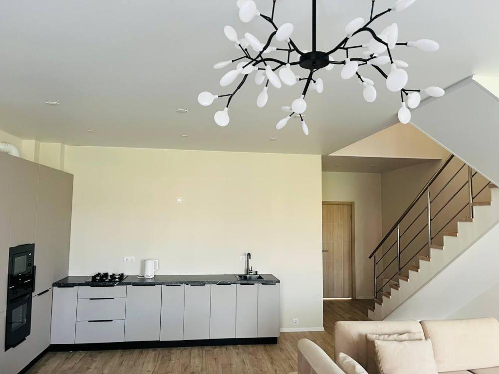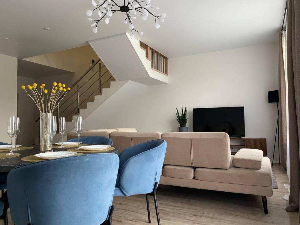 Пространство оформлено в светлой палитре: натуральное дерево, мягкие серо-бежевые стены и акценты глубокого синего создают атмосферу тепла и спокойствия. Название отсылает к идее света, открытости и близости — именно то, что чувствуется в каждом уголке этого дома. Обеденная зона с круглым столом из чёрного мрамора и мягкими креслами цвета индиго — место для семейных ужинов и утреннего кофе. Кухня с серыми фасадами, встроенной техникой и лаконичным дизайном — удобна и незаметно вписана в интерьер. Гостиная с бежевым диваном и мягкими пуфами — пространство для общения, игр и отдыха. Лестница ведёт на второй уровень, где расположены спальни — приватные, светлые, с текстилем в тёплой гамме и ортопедическими матрасами. Пространство наполнено воздухом и светом благодаря панорамным окнам и зеркальным элементам, визуально расширяющим интерьер. На 1-м этаже выход на открытую террасу, где можно провести время наедине с собой и природой, расположившись в уютном кресле, также оборудована зона барбекю, красивый мангал в виде оленя. Комфортное размещение до 8 человек- Закрытая территория с системой доступа. Полное оснащение для длительного проживания. В доме имеется все необходимое для комфортного проживания: постельное бельё премиум-хлопок, 2 типа подушек, тёплые одеяла, Smart-TV, IP-телевидение, подписка на фильмы, обеденная зона: круглый стол, мягкие стулья; рабочая зона: устойчивый стол, удобное кресло; платяной шкаф, тумбы + отдельная гардеробная; варочная газовая панель, духовой шкаф, посудомойка, стиральная машина, СВЧ; полный комплект посуды, ножи, бокалы; утюг, гладильная доска.