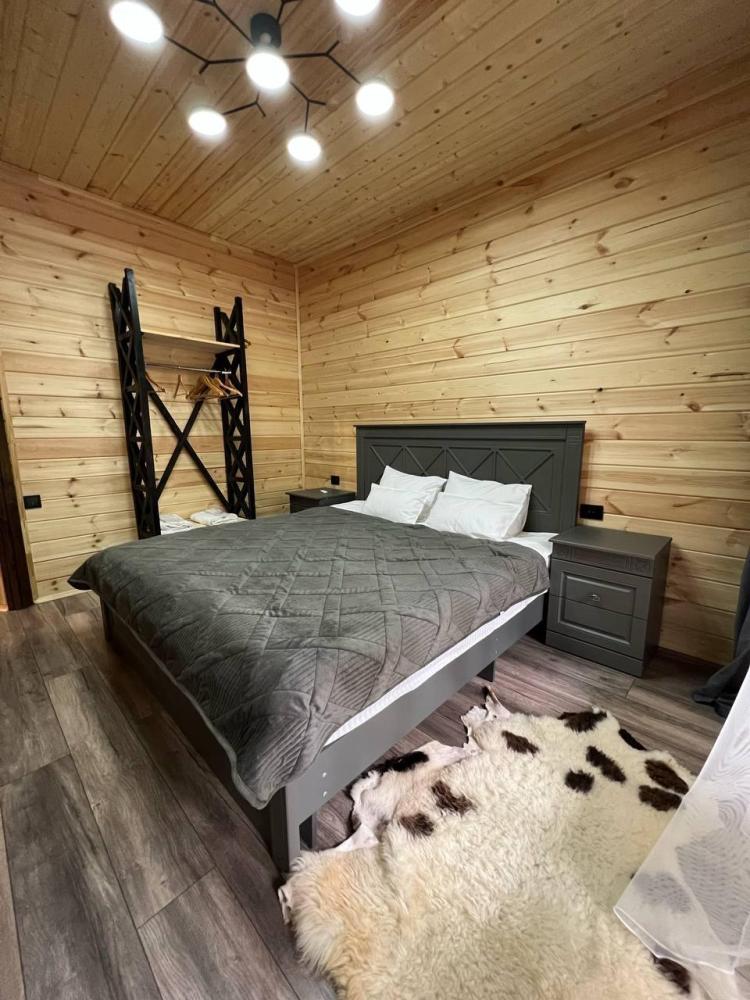 Двухместный номер стандарт, 24 м². Санузел — душ, туалет в номере. Мебель: двуспальная кровать с ортопедическим матрасом, шкаф, прикроватные тумбочки, журнальный столик, прихожая, вешалка, телевизор, сплит система. Тёплый, уютный интерьер с высоким потолком и ароматом дерева. Постельное бельё и полотенца включены.