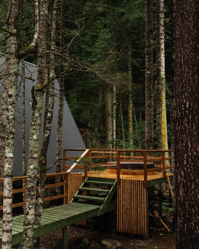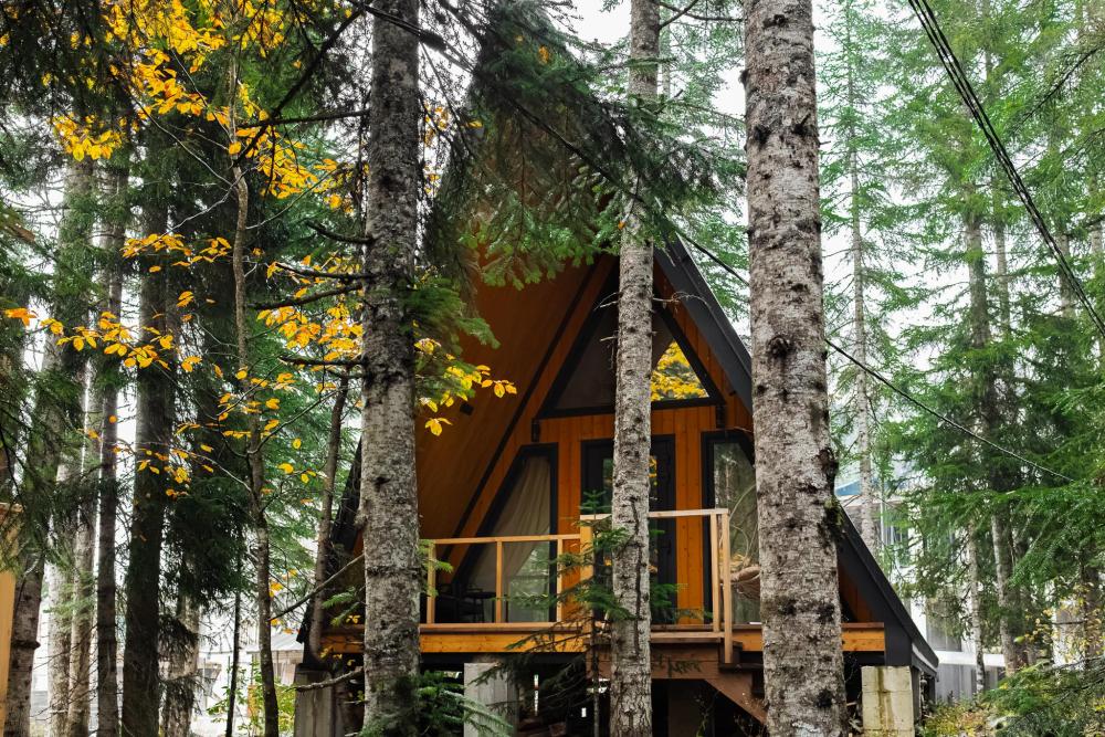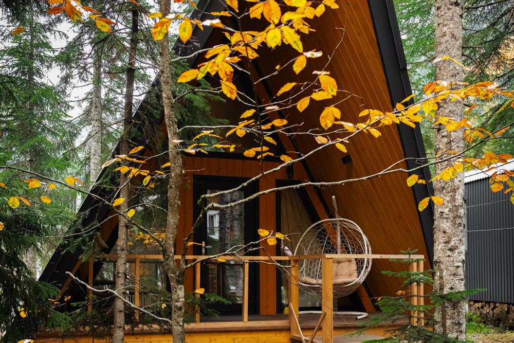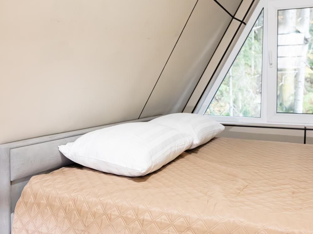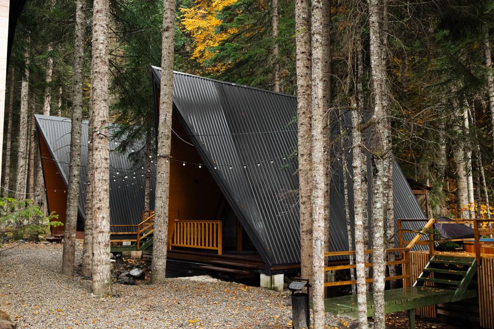 Уютный А-фрейм, рассчитанный на 4 гостей и оборудованный всем необходимым для комфортного проживания. В домике: двуспальная кровать на втором ярусе, на первом - раскладной диван, оборудованная кухня с обеденной зоной, санузел с душем, небольшая терраса.