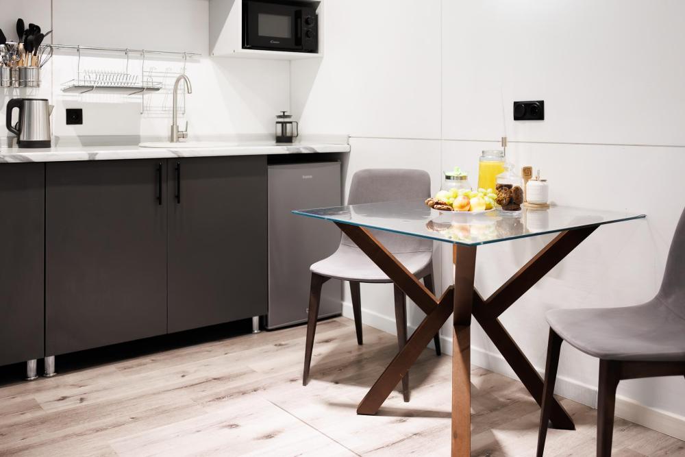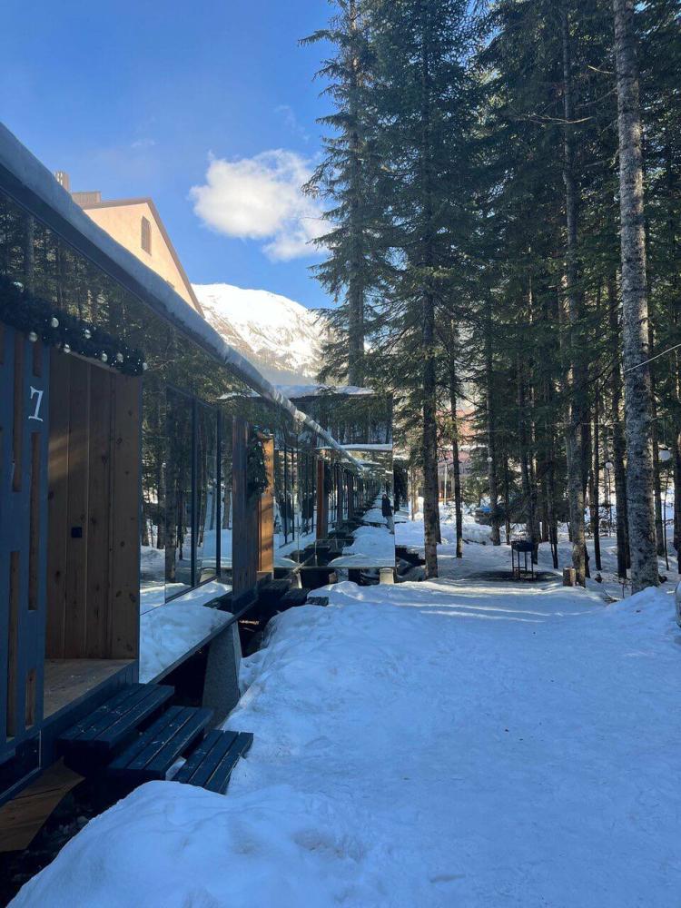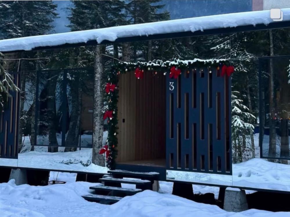 Уютный зеркальный таунхаус для комфортного отдыха в пихтовом лесу Домбая. Идеально подойдёт для компании до четырёх человек — в доме предусмотрена отдельная спальня с двуспальной кроватью и гостиная-кухня с удобным раскладным диваном. Пространство оборудовано всем необходимым для вашего проживания: кухня с посудой, ванная комната, обеденная зона и уютное место для отдыха.