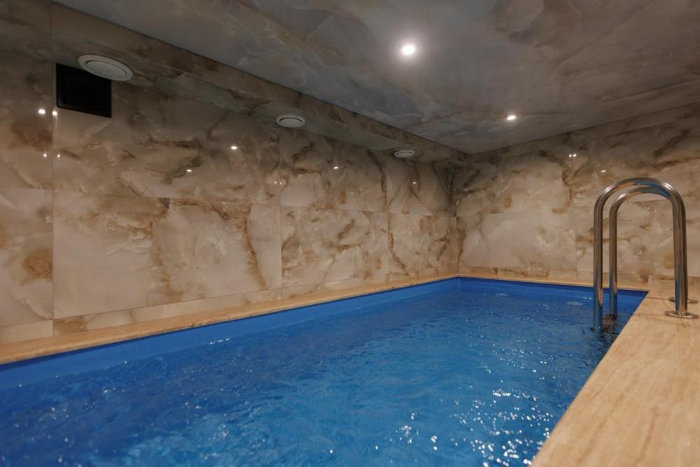 "Номер Люкс площадью 72 кв.м. с видом на горы. Идеально подходит для размещения 6 человек. Имеет спальню с приятным интерьером. В номере:2 двуспальные кровати и 2 двуспальных дивана. Имеется телевизор,чайник, отопление, шкаф, вешалка для одежды, комод и обеденный стол. В ванной комнате находится душ, туалет и раковина, ванные принадлежности,халат,тапочки,фен. В стоимость входит: Постельное бельё, полотенца, WI-Fi бесплатно на всей территории. Парковка - за территорией, охраняемая."
