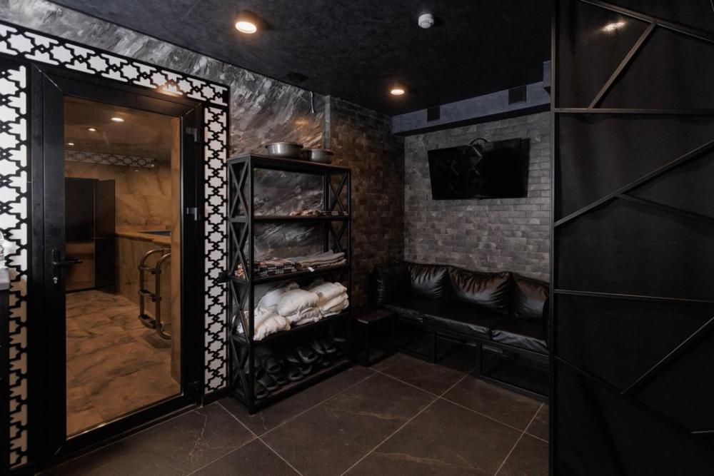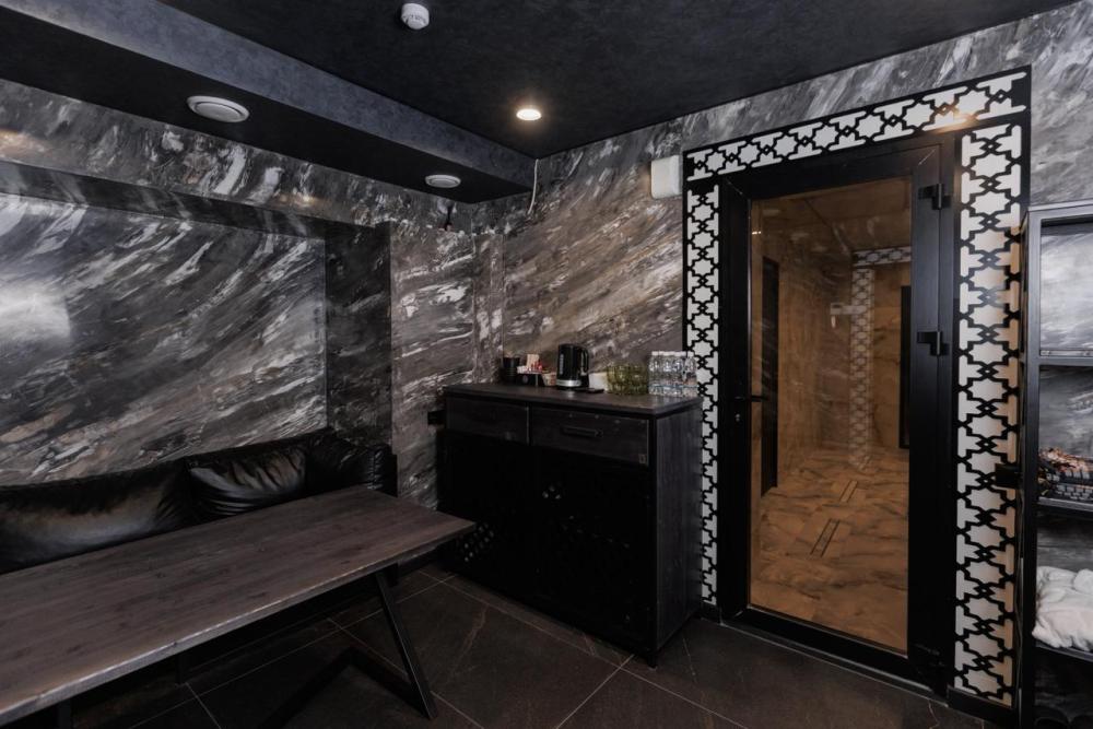 "Номер Делюкс площадью 54 кв.м Идеально подходит для размещения 2 человек. Имеет спальню с приятным интерьером. В номере:1 двуспальная кровать и двуспальный диван. Имеется телевизор,чайник, отопление, шкаф, вешалка для одежды, комод и обеденный стол. В ванной комнате находится душ, туалет и раковина, ванные принадлежности,халат,тапочки,фен. В стоимость входит: Постельное бельё, полотенца, WI-Fi бесплатно на всей территории. Парковка - за территорией, охраняемая."