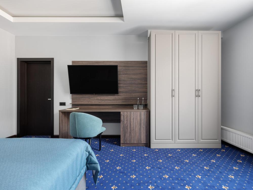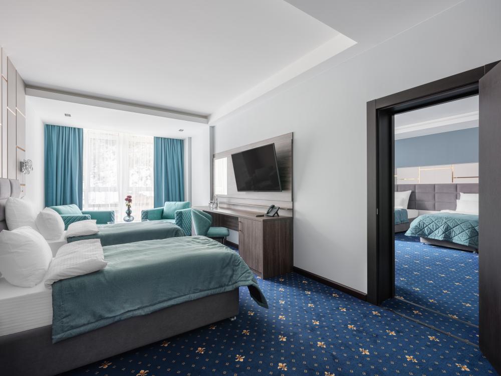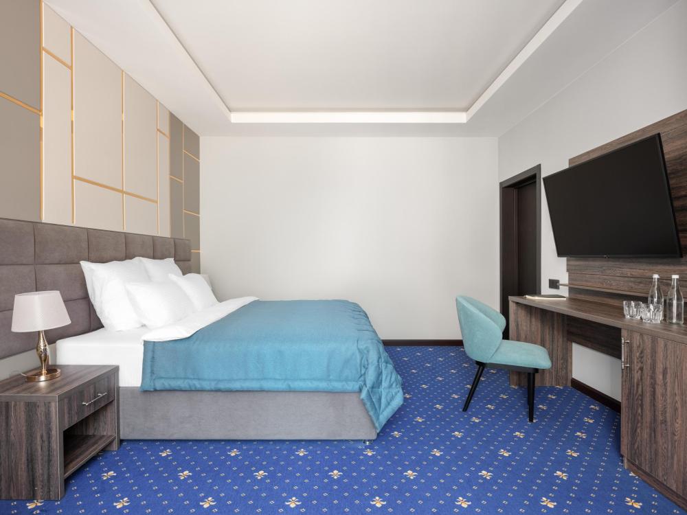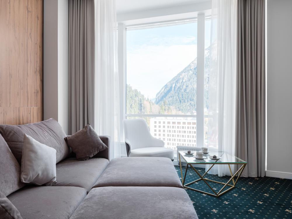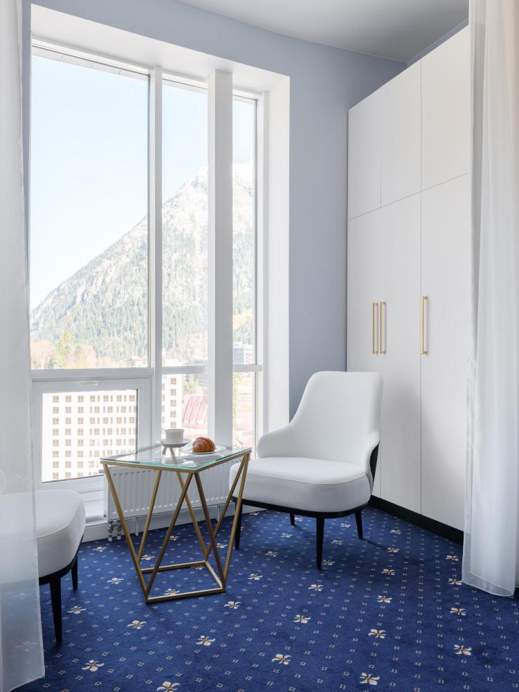 Просторный номер с панорамными окнами , которые заливают его солнечным светом, открывая невероятный вид на горные вершины. В номере двухспальная кровать или две односпальные кровати с ортопедическим матрасом, что гарантирует вам крепкий сон. Мягкие кресла . Полы покрыты ковровым покрытием Изысканная сантехника в современном дизайне добавляет элегантности в атмосферу ванной комнаты. Санузел оборудован ванной, унитазом и биде