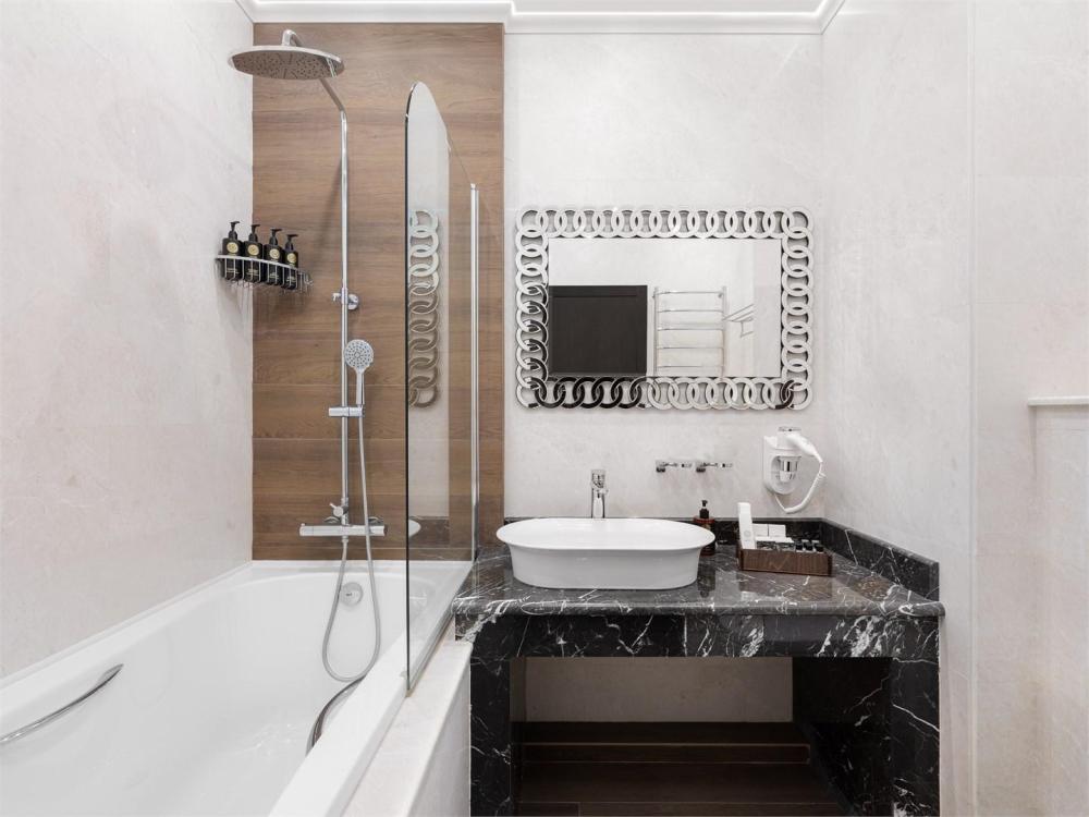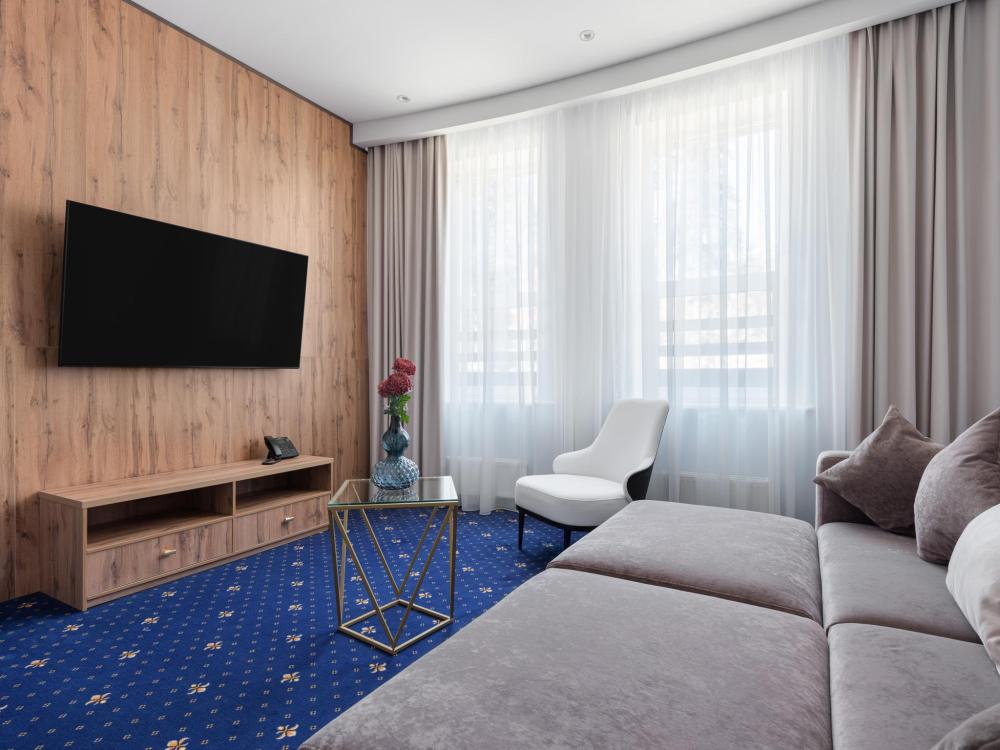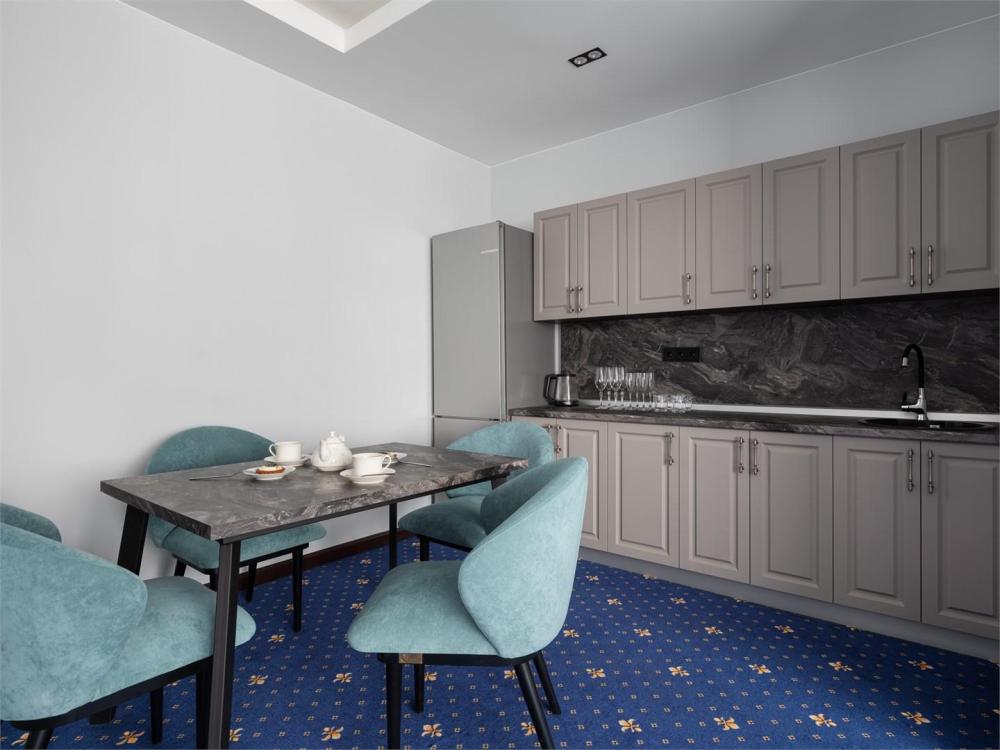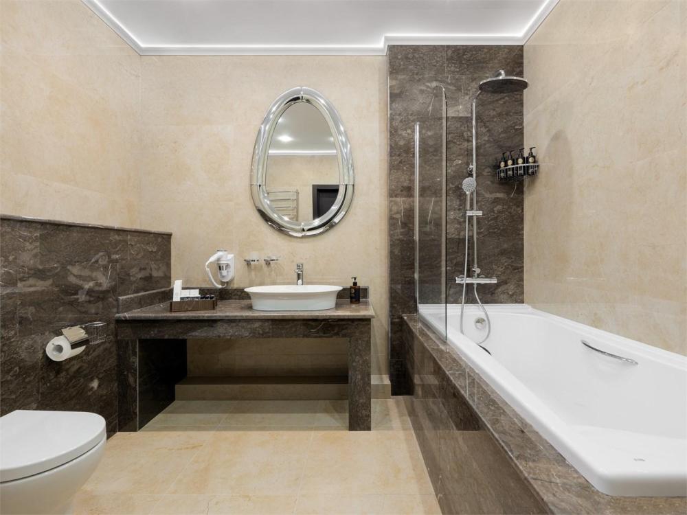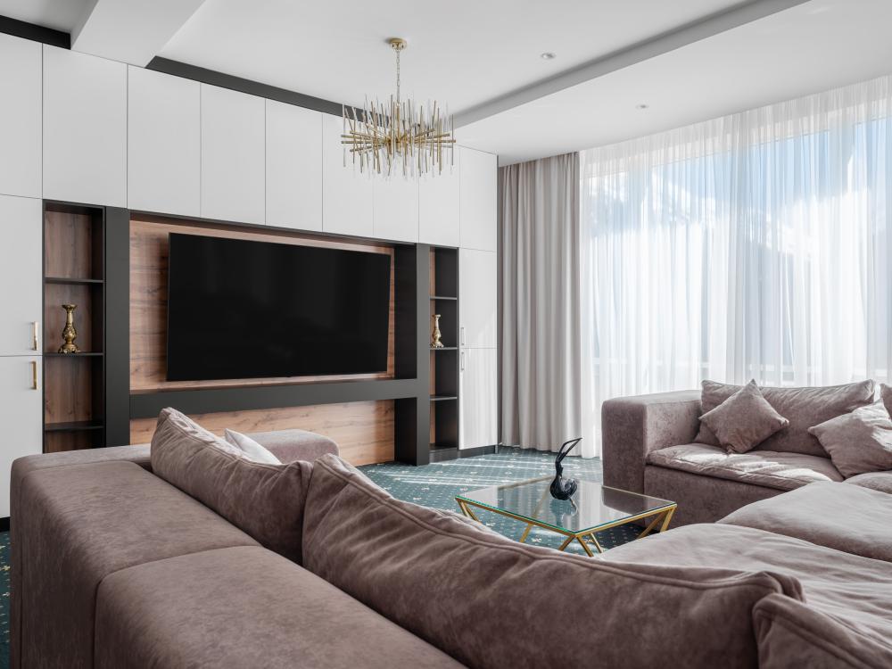 Президентский номер, расположенный на седьмом этаже — самом высоком этаже отеля, предлагает не только утонченную роскошь, но и захватывающую панораму, открывающую великолепные виды на окружающие горные пейзажи. Просторная спальня обеспечивает максимальное уединение и отдых, создавая атмосферу гармонии и спокойствия. Гардероб, выполненный с учетом всех современных стандартов, позволяет удобно разместить личные вещи. Два изысканных санузла подчеркивают высокие стандарты сервиса и продуманность каждой детали. Гостевая зона создана для общения и расслабления, которая плавно переходит в зону переговоров, что делает номер идеальным для деловых встреч. Обеденная зона с мини-кухней предоставляет возможность наслаждаться изысканными блюдами в атмосферной обстановке, что делает ваше пребывание еще более комфортным. Этот номер — это пространство, где роскошь и функциональность гармонично сочетаются, предлагая вам уникальный опыт на высшем уровне, дополненный великолепной панорамой, которая вдохновляет и расслабляет.