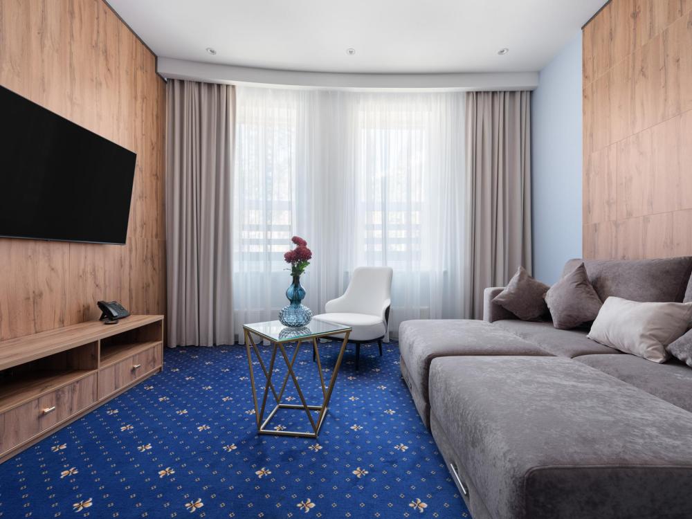 Двухкомнатный номер создан для комфорта, уединения и уюта. Гостиная комната с большим обволакивающим диваном приглашает удобно расположиться за просмотром хорошего кино или душевными разговорами. В спальной комнате кровать двуспальная или две односпальные с ортопедическим матрасом, который обеспечит для вас крепкий сон. Дополняют интерьер мягкие кресла, сидя на которых вы будете любоваться невероятными видами . Санузел оборудован ванной, раковиной, унитазом, гигиеническим душем