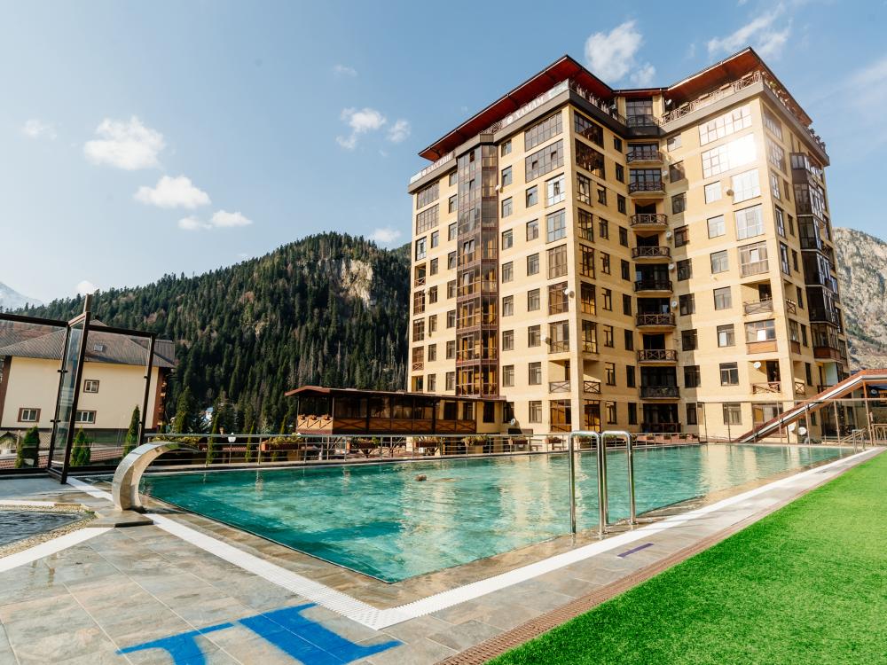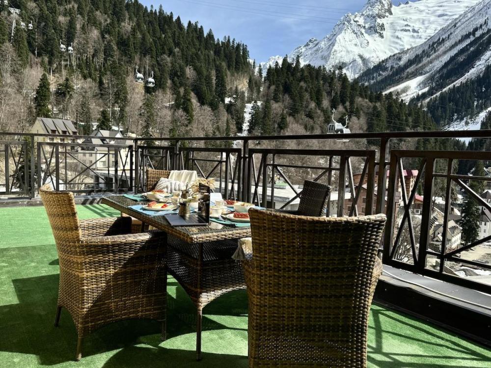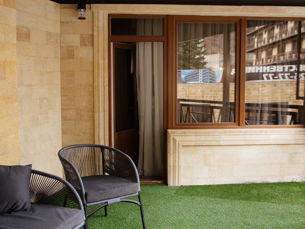 Двухкомнатный номер на 10 этаже с большой террасой и великолепным видом. Дизайн выполнен в альпийском стиле. В стоимость проживания включено посещение двух СПА комплексов на протяжении всего отдыха. В номере двухспальная кровать с комфортным ортопедическим матрасом, двуспальный диван, кухонный уголок и обеденный стол. Номер оснащен плазменной панелью со спутниковыми каналами, караоке, WI-FI, холодильником, В ванной комнате предлагаются: косметические средства, фен.