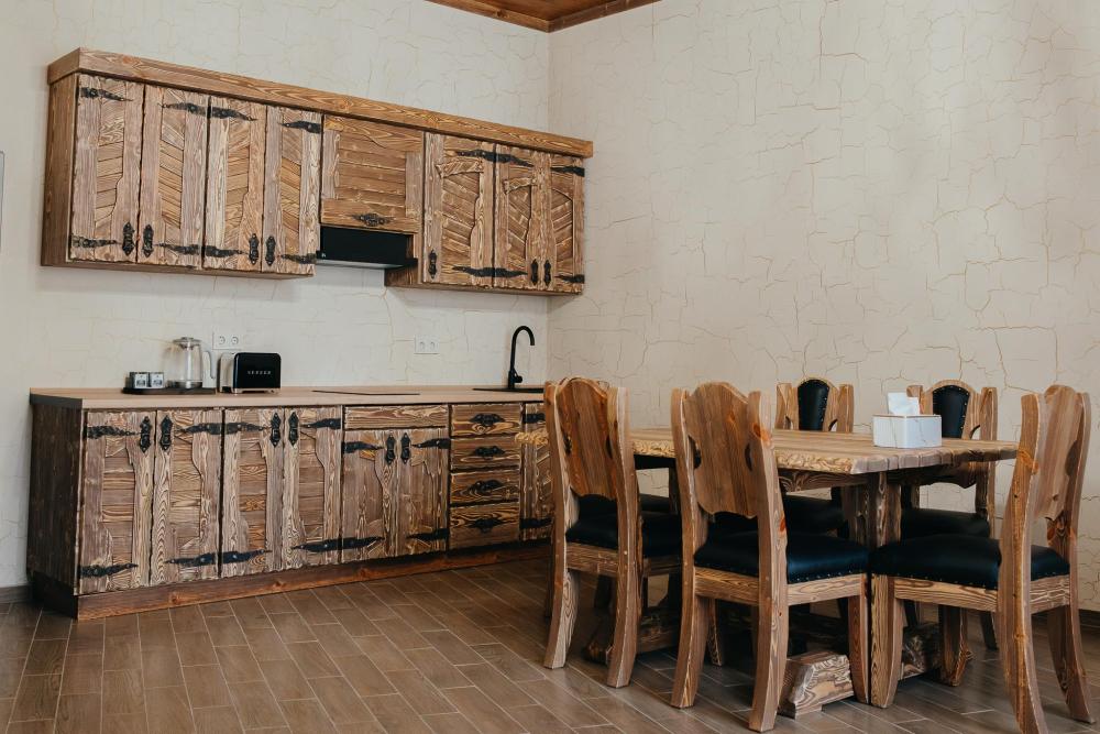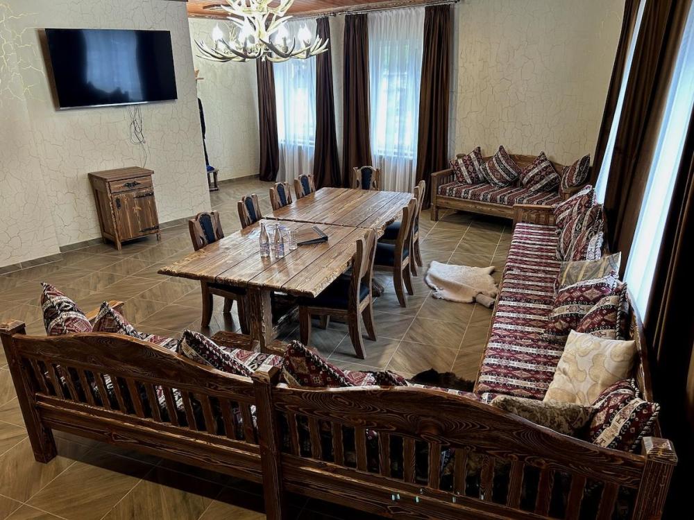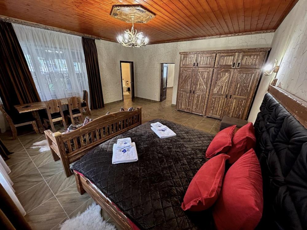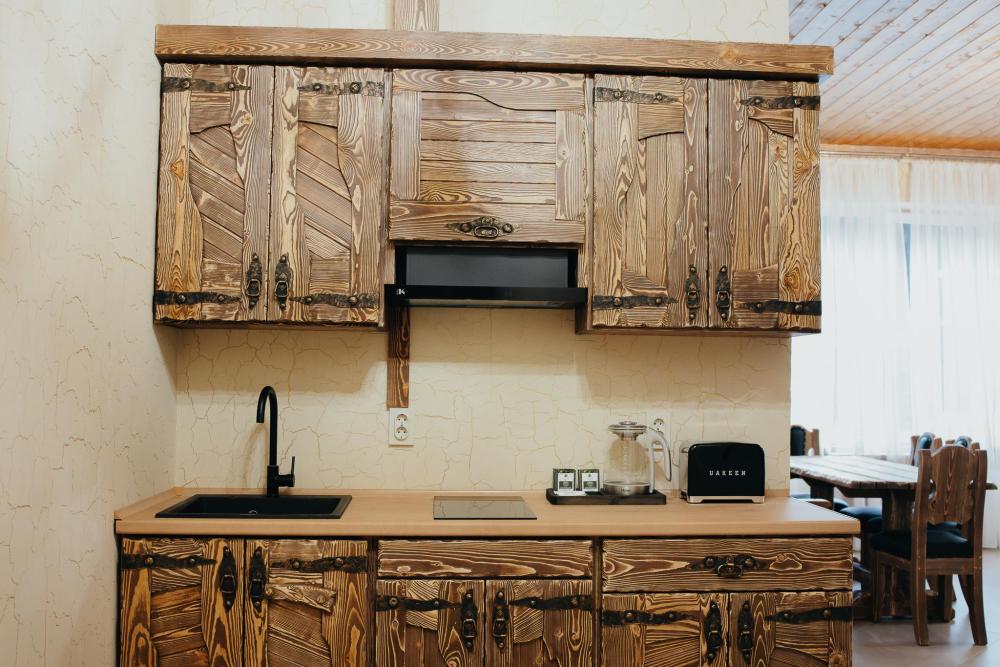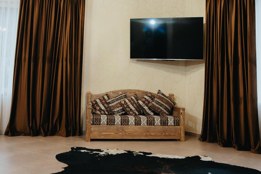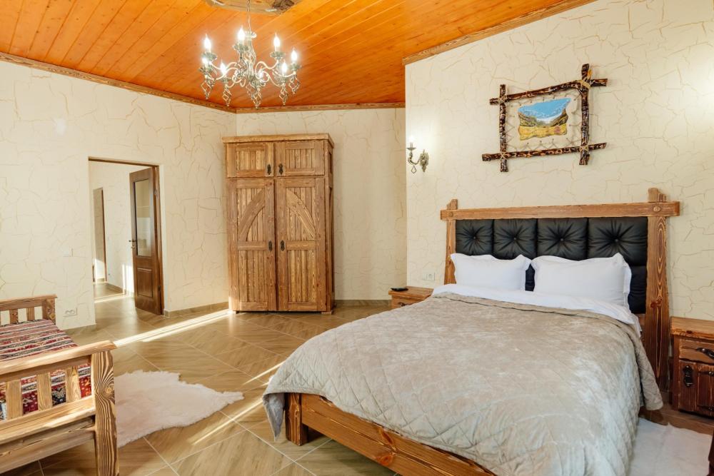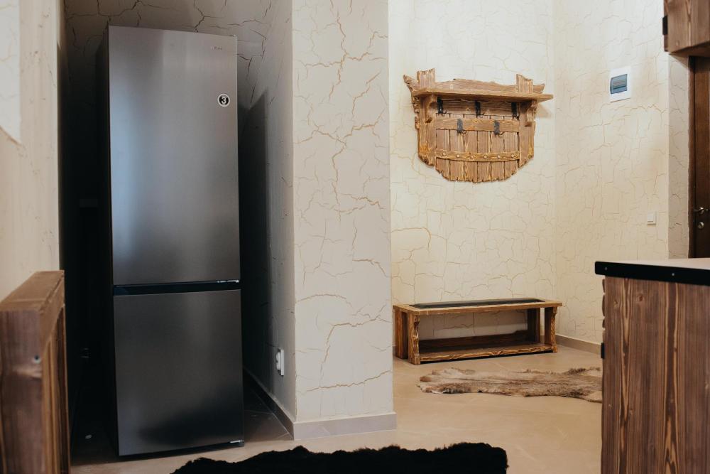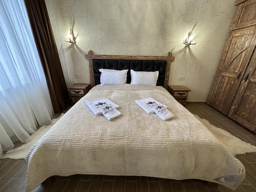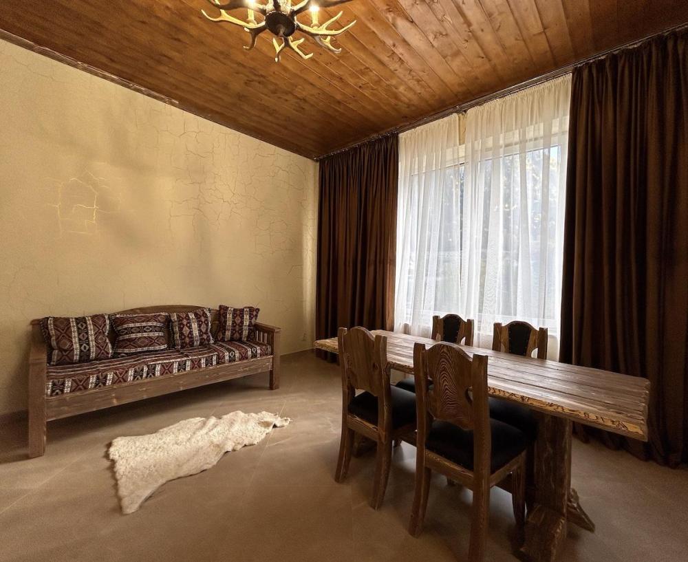 Дизайн выполнен в альпийском стиле. В стоимость проживания включено посещение двух СПА комплексов на протяжении всего отдыха. В номере двухспальная кровать с комфортным ортопедическим матрасом, два двуспальных дивана, кухня и обеденный стол. Номер оснащен плазменной панелью со спутниковыми каналами, караоке, WI-FI, холодильником. Два санузла, в ванной комнате предлагаются: косметические средства, фен.