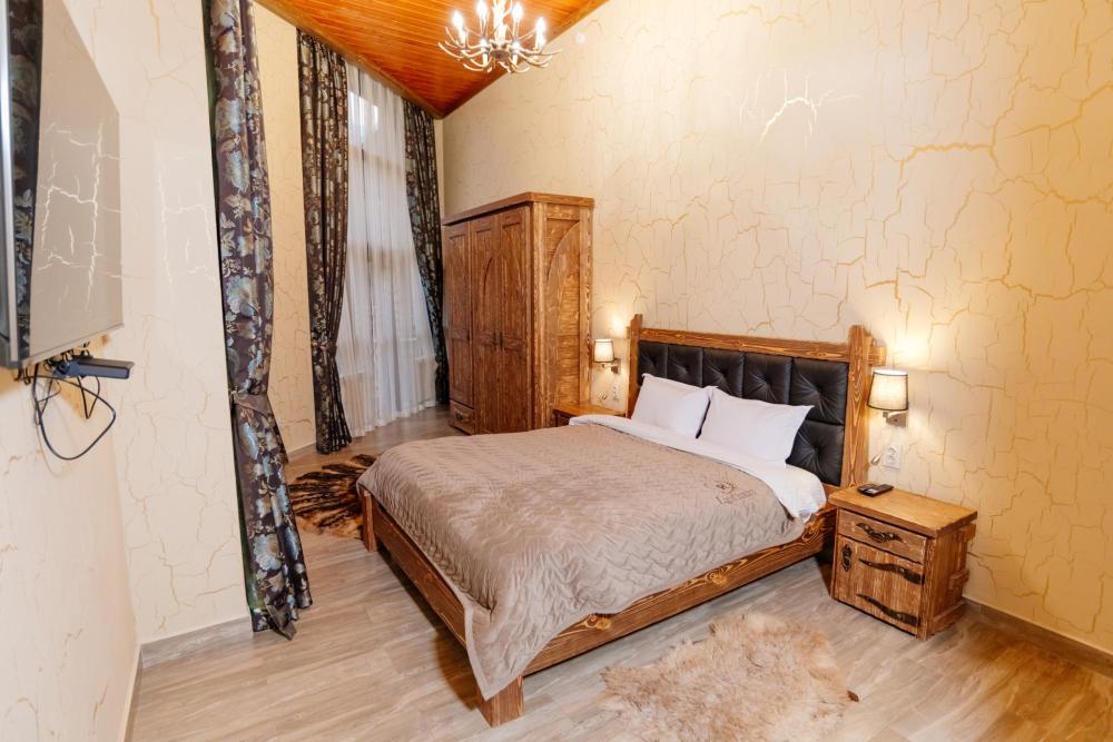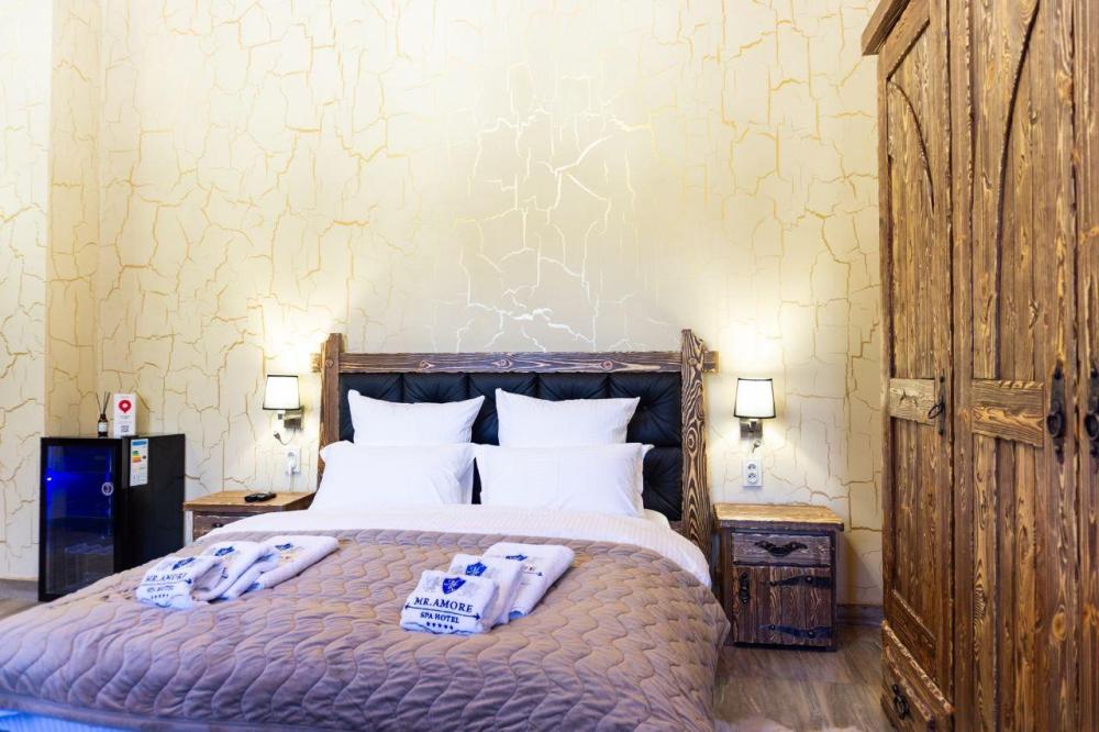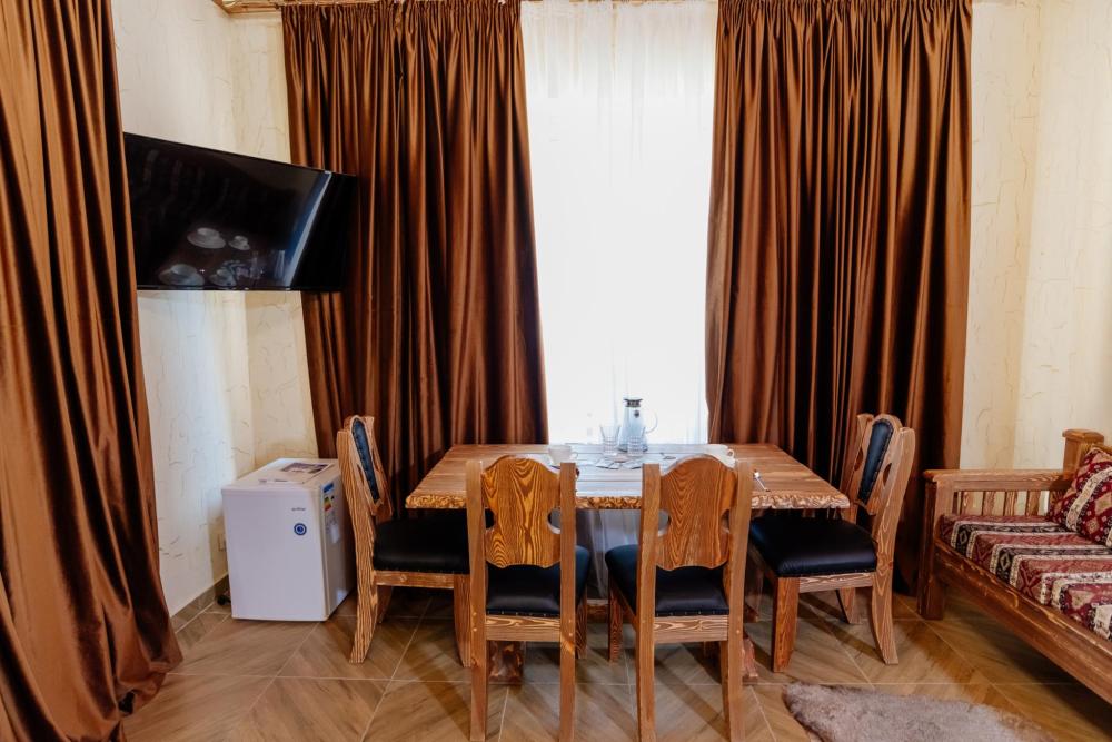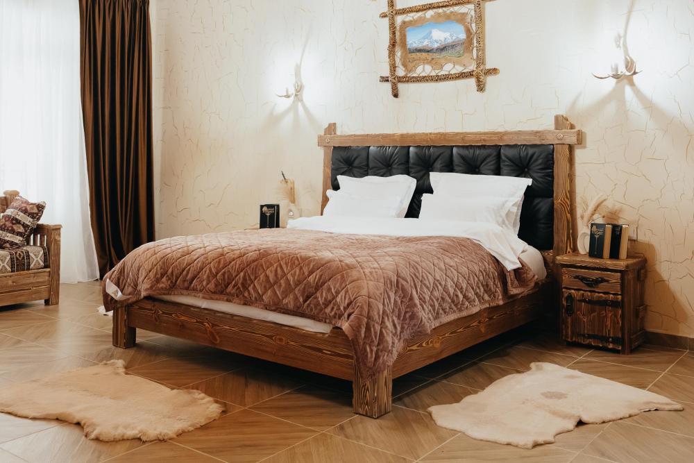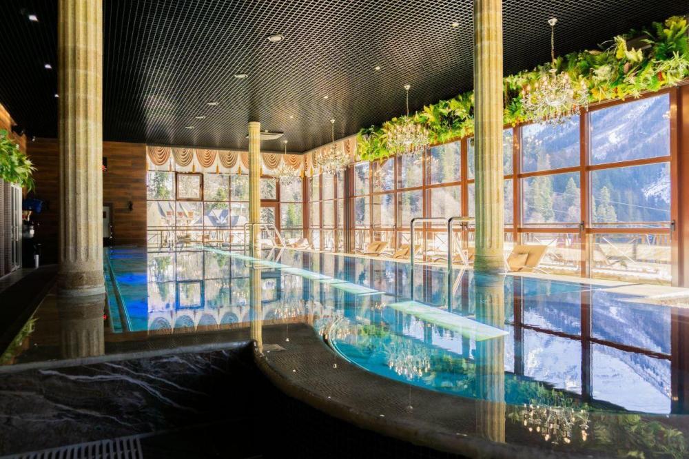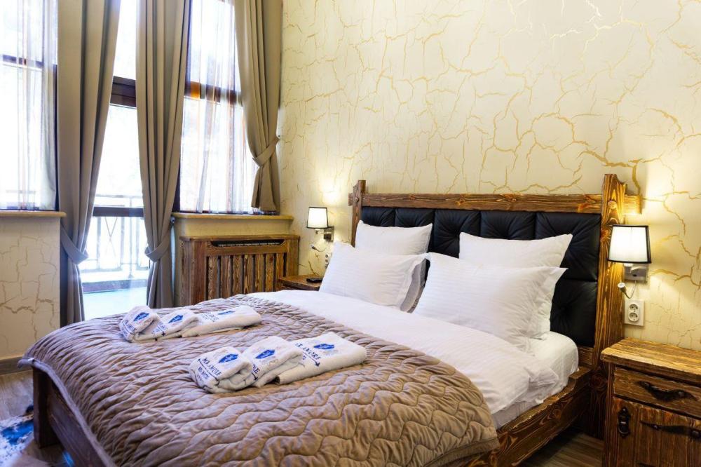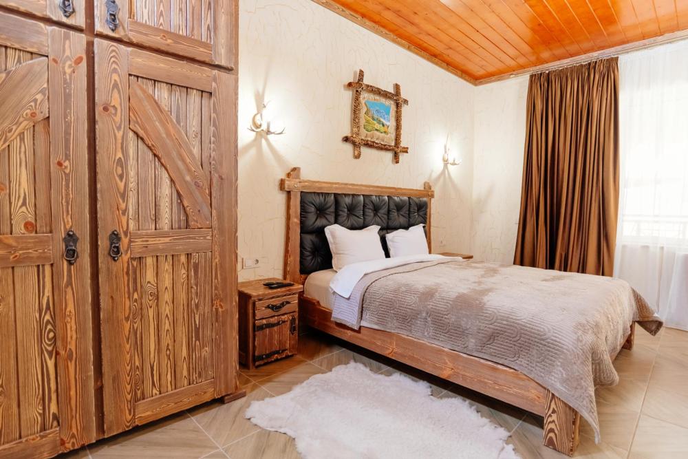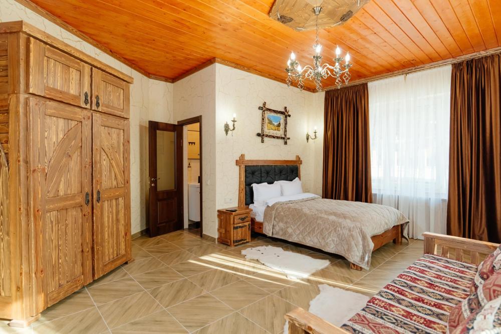 Дизайн выполнен в альпийском стиле. В стоимость проживания включено посещение двух СПА комплексов на протяжении всего отдыха. В номере двухспальная кровать с комфортным ортопедическим матрасом, двуспальный диван, обеденный стол. Номер оснащен плазменной панелью со спутниковыми каналами, WI-FI, мини-холодильником, В ванной комнате предлагаются: косметические средства, фен.