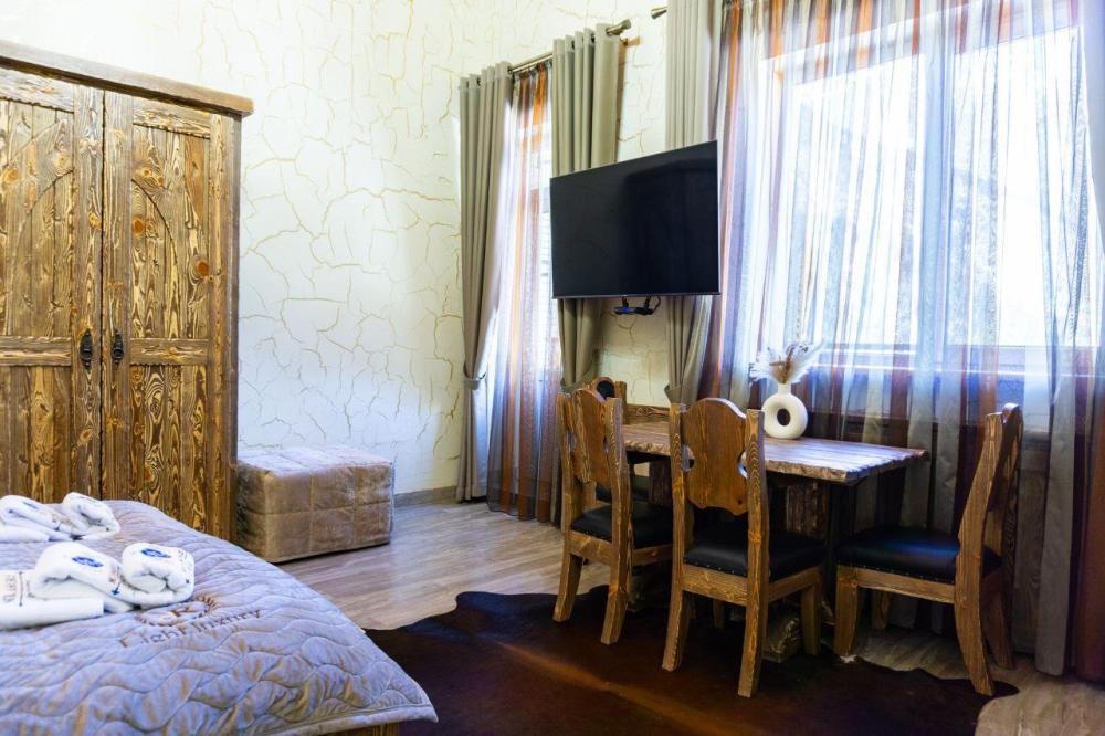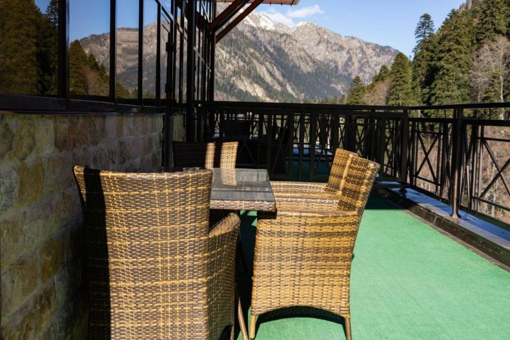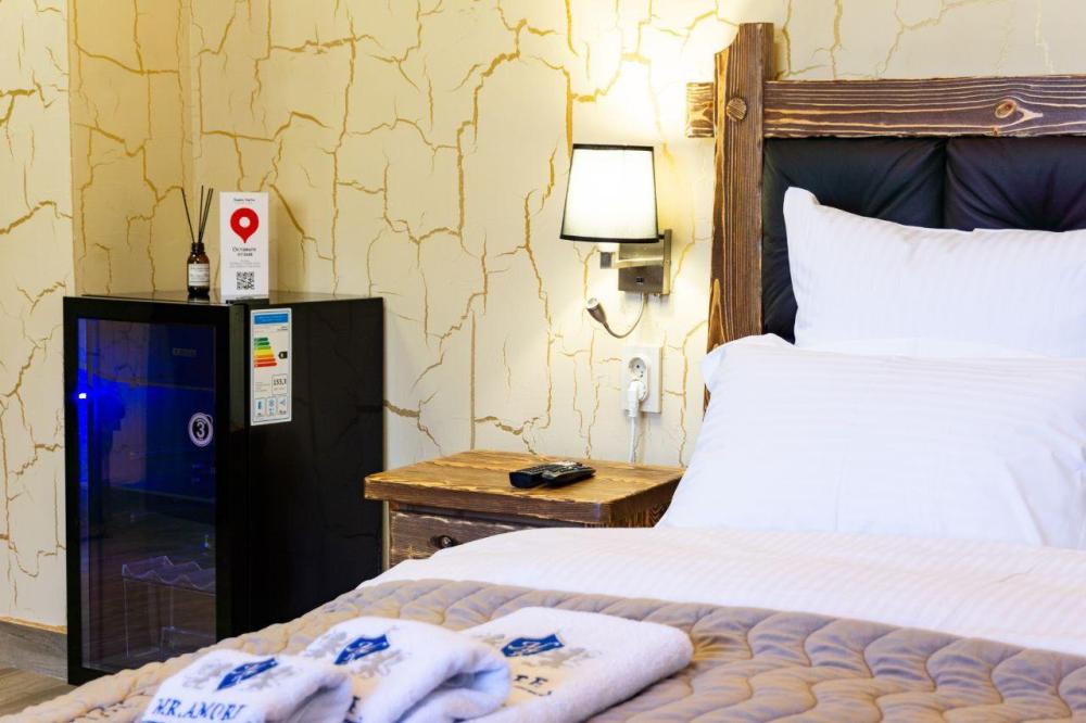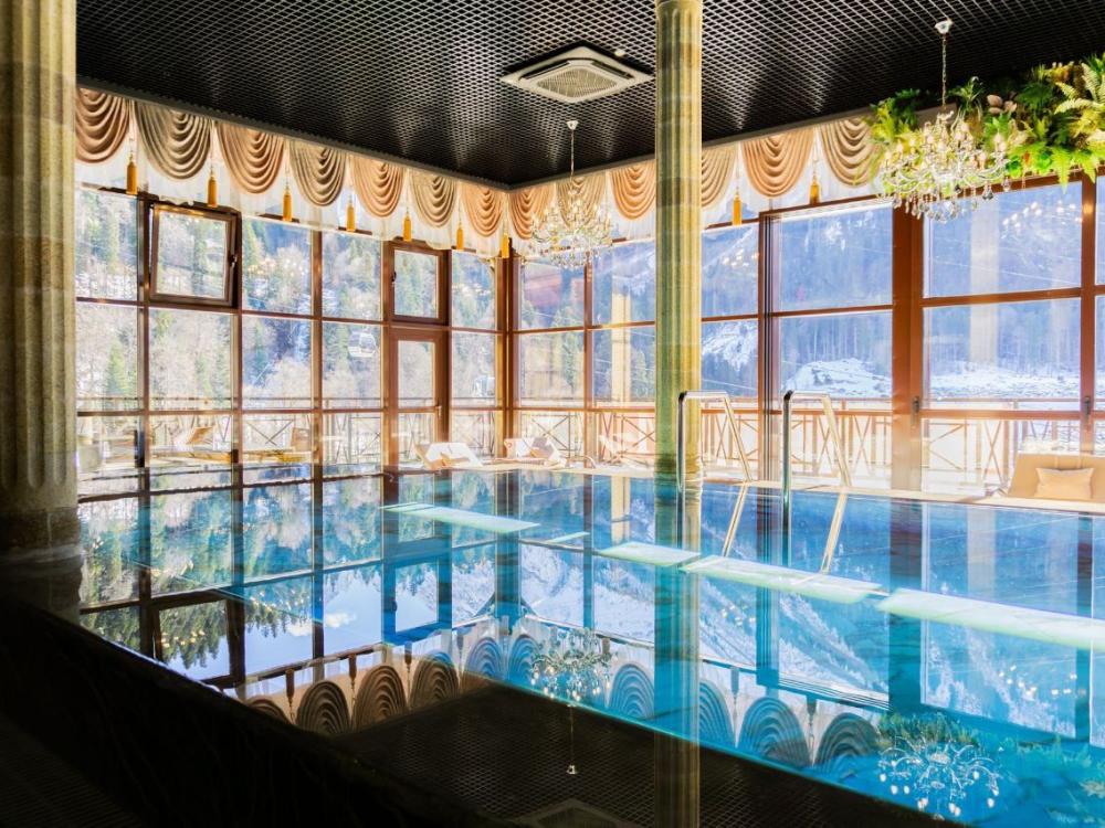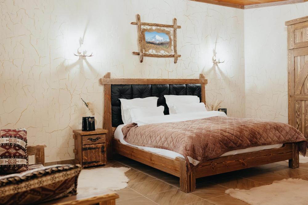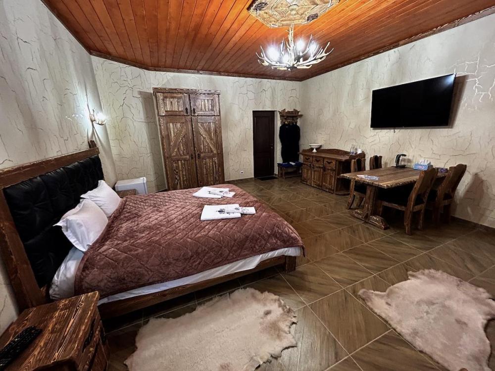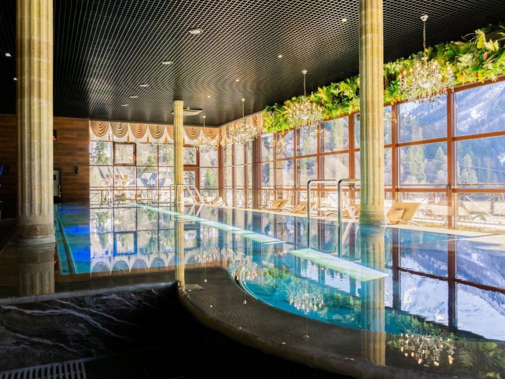 Дизайн выполнен в альпийском стиле. В стоимость проживания включено посещение двух СПА комплексов на протяжении всего отдыха. В номере двухспальная кровать с комфортным ортопедическим матрасом, двуспальный диван, обеденный стол. Номер оснащен плазменной панелью со спутниковыми каналами, WI-FI, мини-холодильником, В ванной комнате предлагаются: косметические средства, фен.