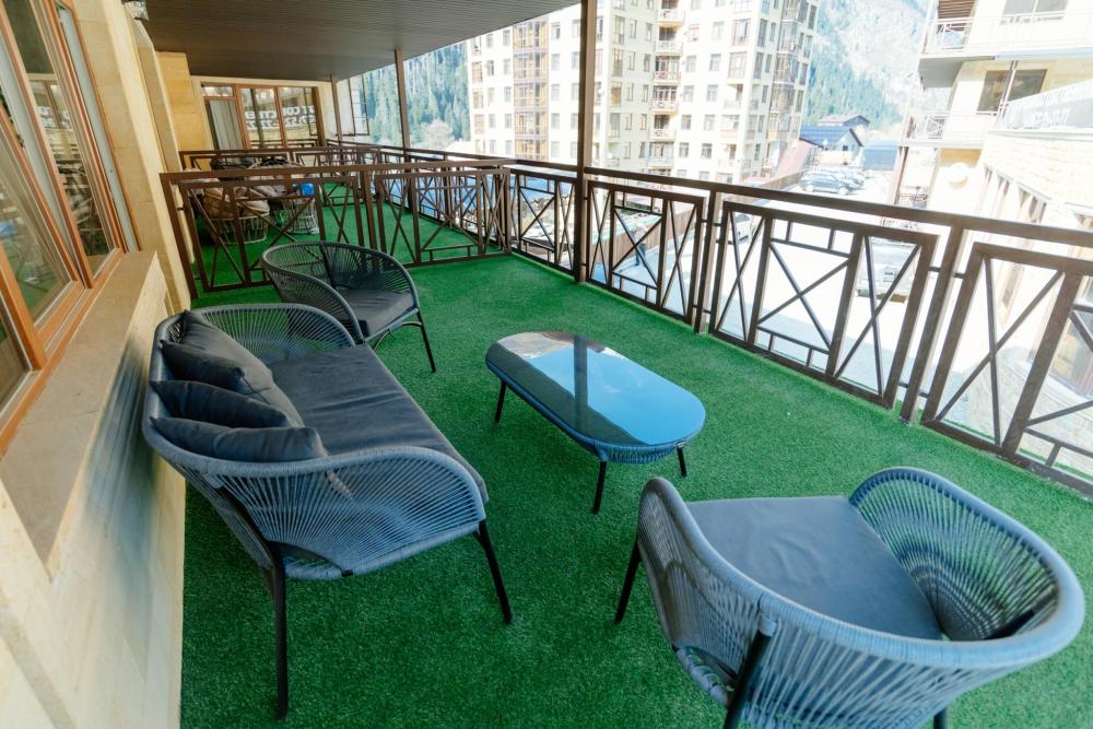 Двухкомнатный номер на 10 этаже с большой террасой и великолепным видом. Дизайн выполнен в альпийском стиле. В стоимость проживания включено посещение двух СПА комплексов на протяжении всего отдыха. В номере двухспальная кровать с комфортным ортопедическим матрасом, Два двуспальных дивана, кухонный уголок и обеденный стол. Номер оснащен плазменной панелью со спутниковыми каналами, караоке, WI-FI, холодильником, В ванной комнате предлагаются: косметические средства, фен.