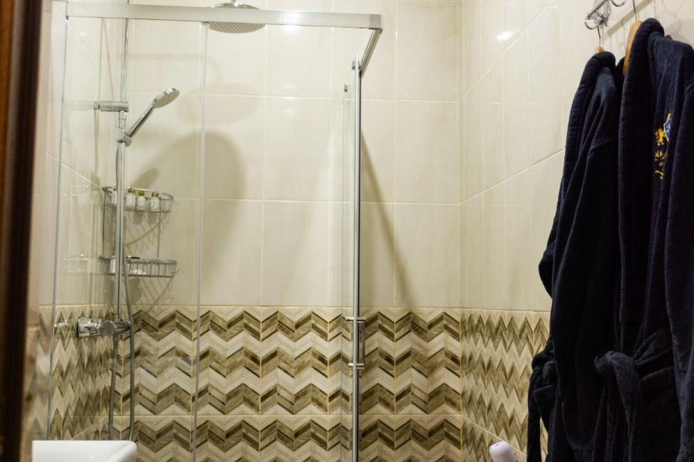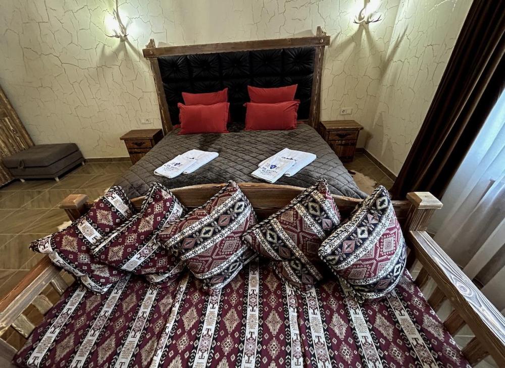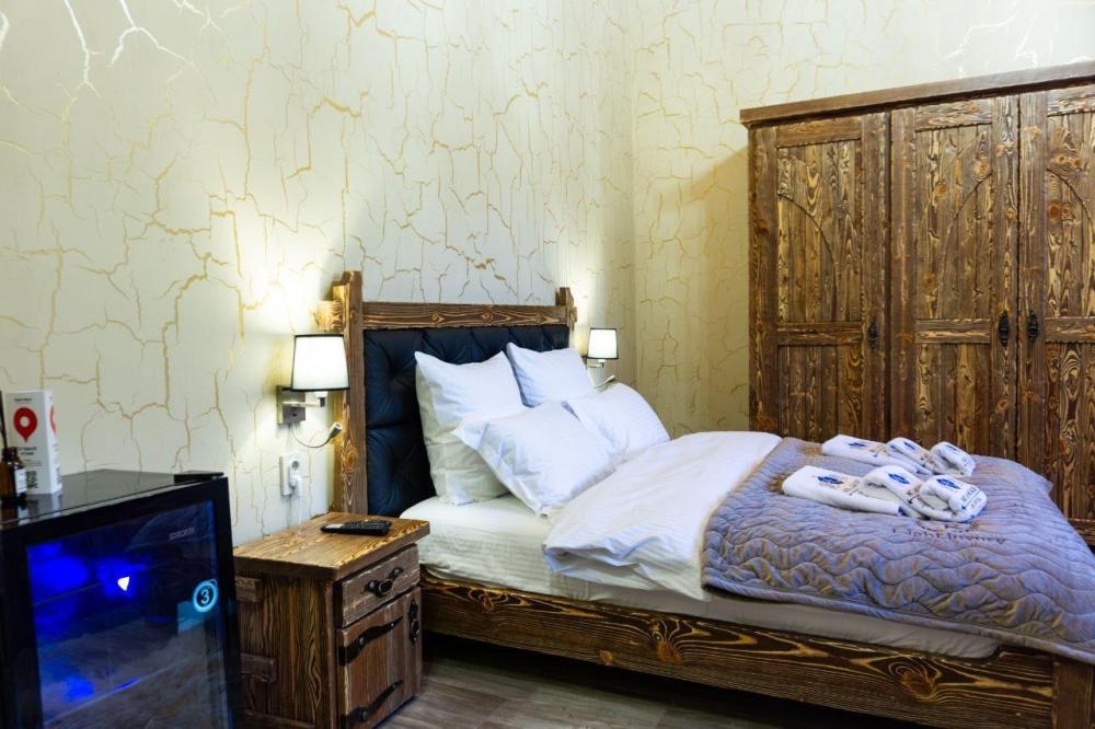 Однокомнатные, с двуспальной кроватью. Душевая со всеми необходимыми принадлежностями: халаты, тапочки, полотенца, фен, косметические средства. Есть выход на террасу на термальном бассейне на 3 этаже