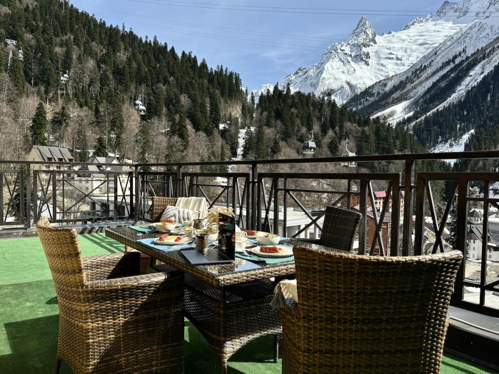 Двухместный номер на 10 этаже с большой террасой и великолепным видом. Дизайн выполнен в альпийском стиле. В стоимость проживания включено посещение двух СПА комплексов на протяжении всего отдыха. В номере двухспальная кровать с комфортным ортопедическим матрасом, кухонный уголок и обеденный стол. Номер оснащен плазменной панелью со спутниковыми каналами, WI-FI, мини-холодильником, В ванной комнате предлагаются: косметические средства, фен.