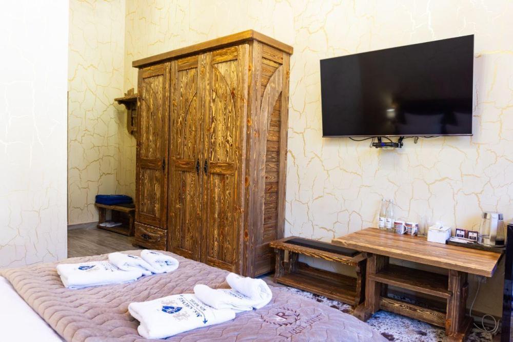 Однокомнатные, с двуспальной кроватью. Душевая со всеми необходимыми принадлежностями: халаты, тапочки, полотенца, фен, косметические средства. Есть выход на террасу, номер расположен на термальном бассейне на 3 этаже