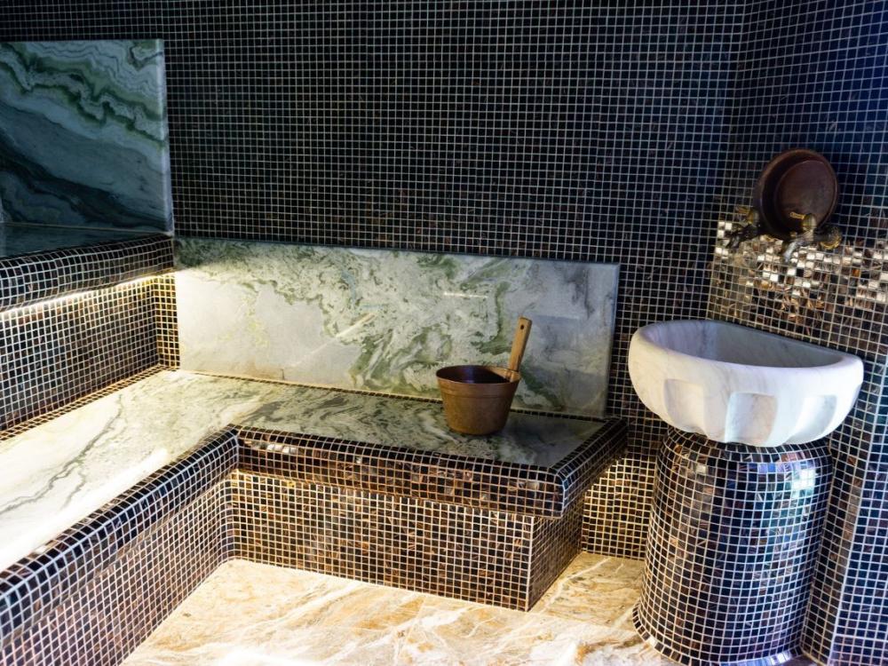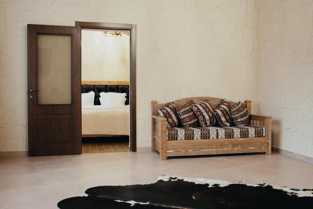 Двухкомнатный с отдельной спальней, в которой размещена двуспальная кровать. Отдельная гостиная, кухонная и обеденная зона. Два дополнительных спальных места. Душ со всеми необходимыми принадлежностями: халаты, тапочки, полотенца, фен, косметические средства. Имеется выход на террасу и термальный бассейн. Включены: завтраки, парковка, хамам, термальный бассейн и бассейн с пресной водой во дворе на открытом воздухе