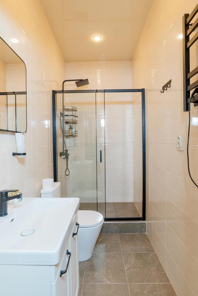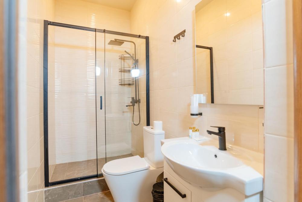 Двухкомнатный с отдельной спальней, в которой размещена двуспальная кровать. Отдельная гостиная, кухонная и обеденная зона. - Два дополнительных спальных места -Душевая со всеми необходимыми принадлежностями: халаты, тапочки, полотенца, фен, косметические средства, -Караоке-система и умная колонка,