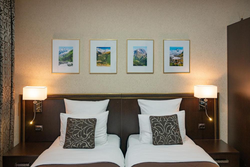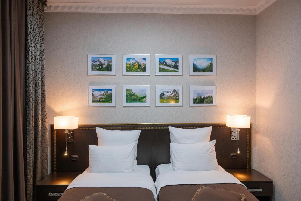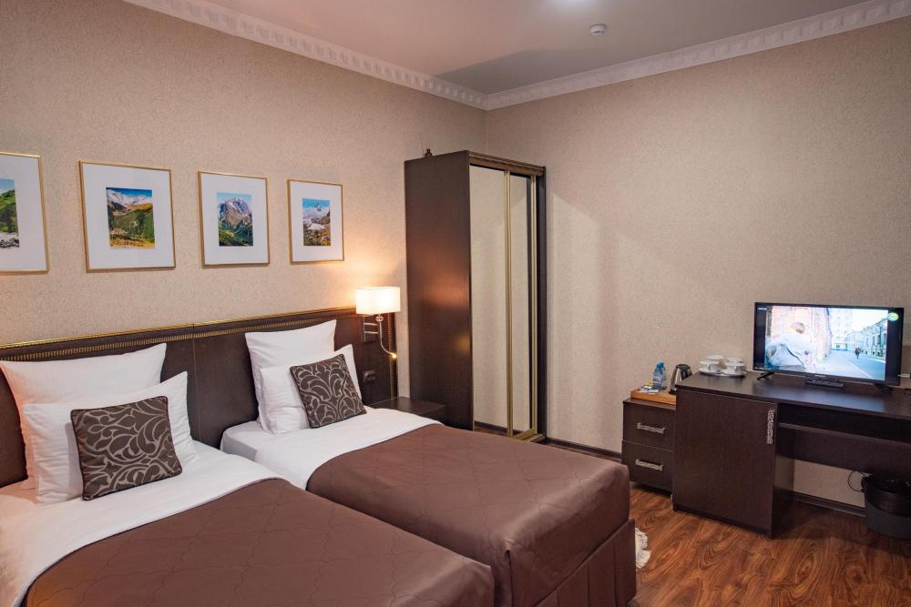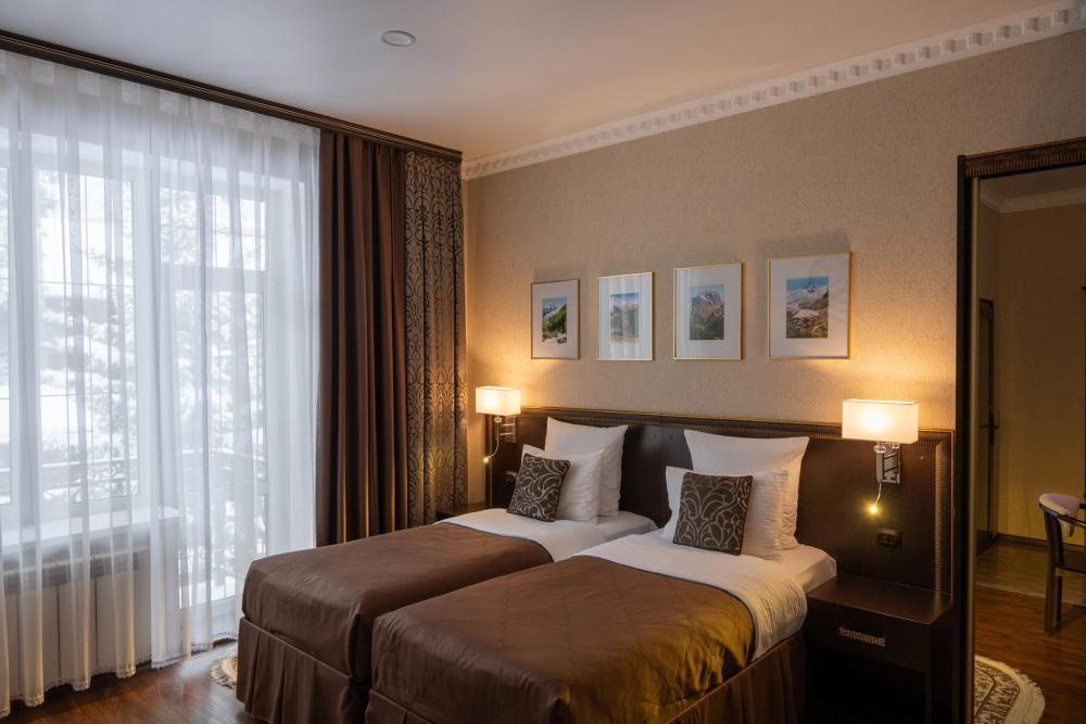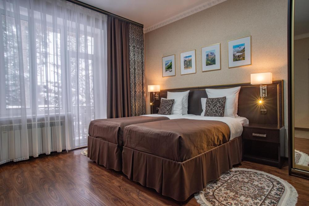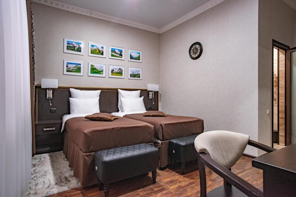 Однокомнатный номер, выполненный в уютном интерьере для 2-местного размещения, расположен в Основном корпусе на 1 этаже. В номере имеется спальная зона с двумя односпальными кроватями с ортопедическим матрацем, прикроватные тумбы, шкаф-купе с зеркалом, рабочий стол и стул, LED телевизор диагональю 32 дюйма, 20 каналов TV, вешалка для верхней одежды, полка для обуви, ванная комната. Отопление - батарея, теплый пол. Вместимость до 2 человек + один ребенок до 6 лет с предоставлением спального места. В стоимость номера входит завтрак, парковка, WiFi.